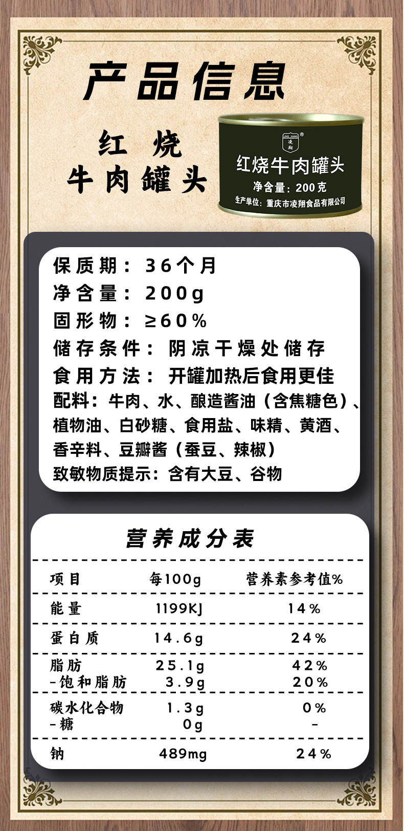 凌翔紅焼豚肉缶詰500グラム加熱インスタント缶詰鍋物パートナー調理下料理