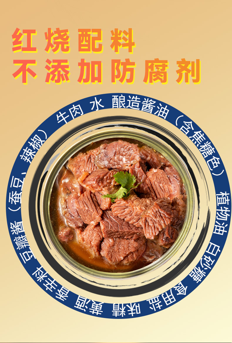 宗食品牛肉酱红烧牛肉罐头伴侣午餐肉罐头方便面正的即食户外肉类