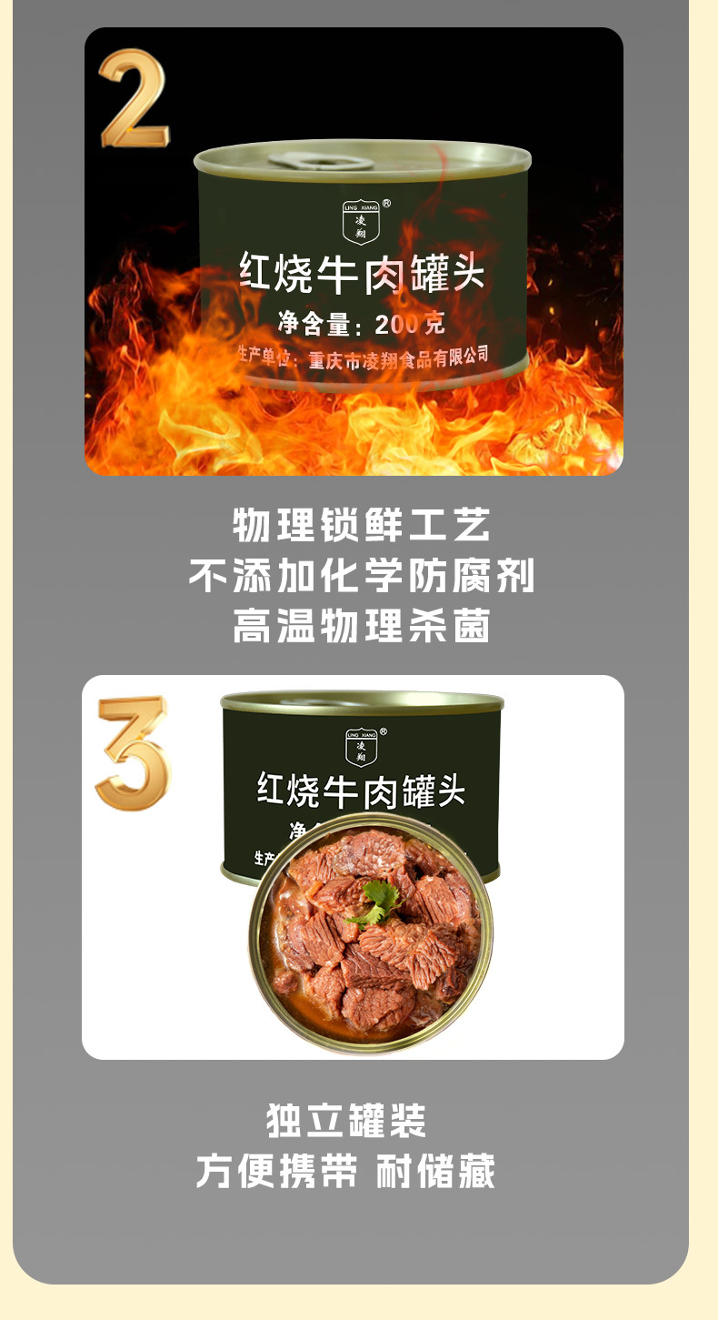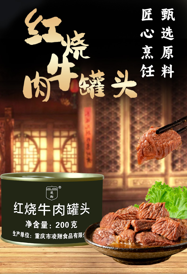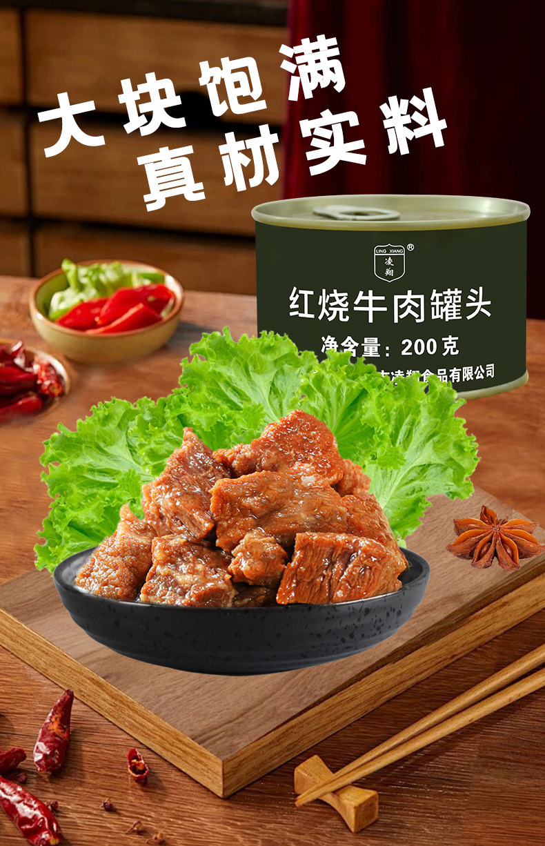 凌翔牛肉ランチ肉缶詰200gオープン缶インスタントランチ肉鍋バーベキュー食材屋外カップラーメン野炊飯