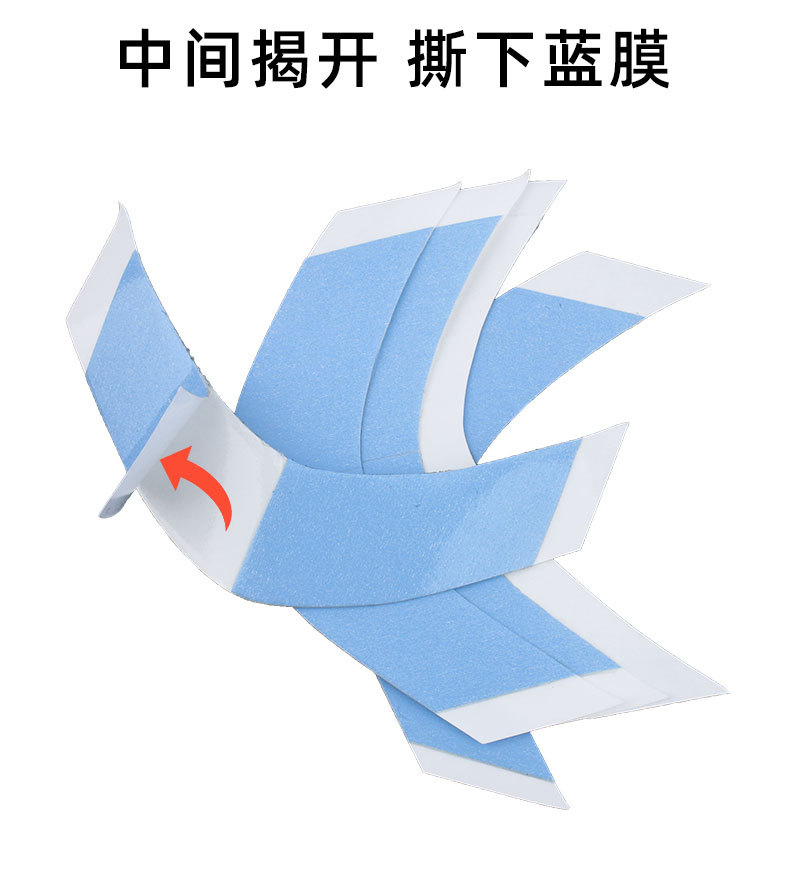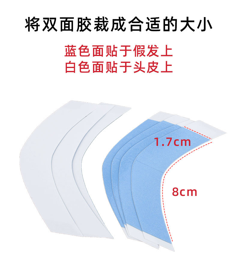 青色の薄いウィッグ接着剤フィルムは、ウィッグを貼り付けるための両面テープで、防水性と耐汗性を備えたウィッグ固定用パッチです。