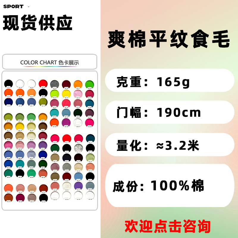 160グラム綿片面汗布綿平織り汗布精綿片面布ニット布綿100% 汗布tシャツ生地