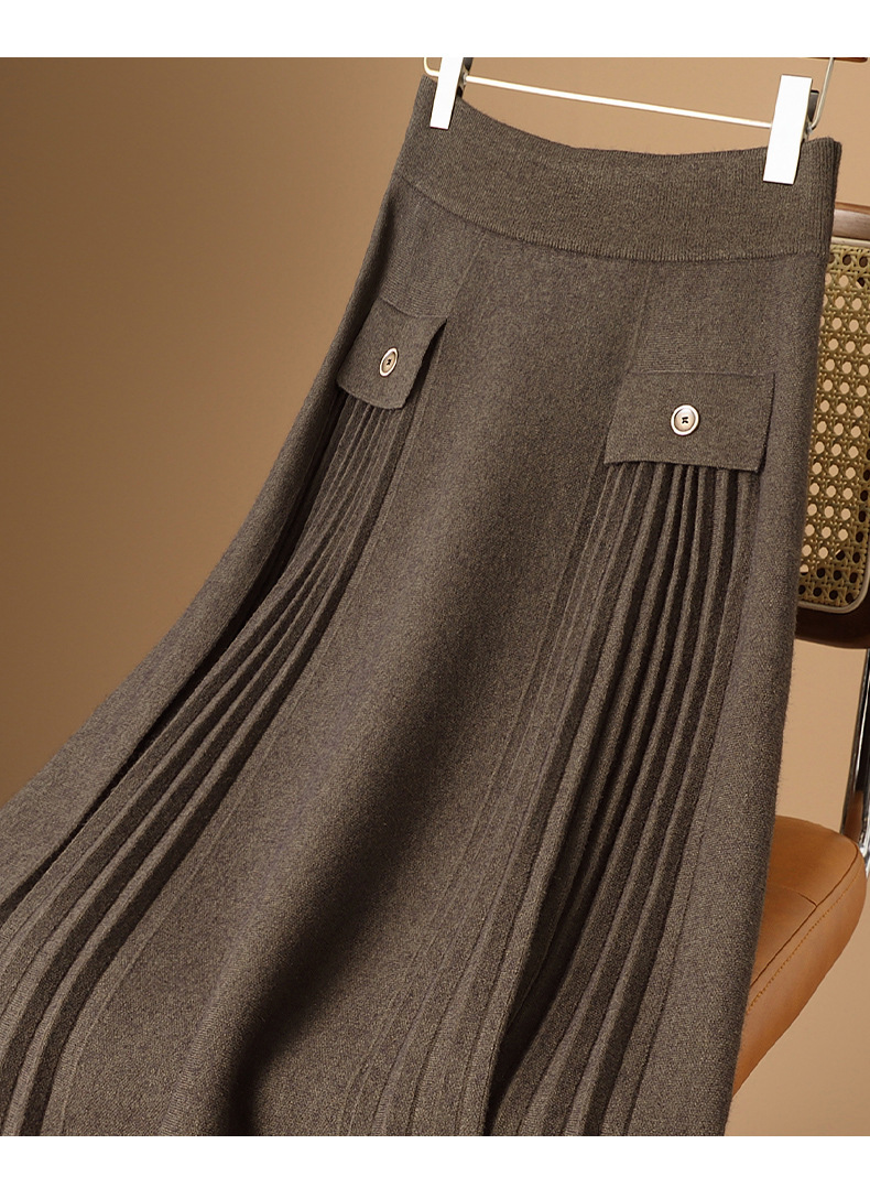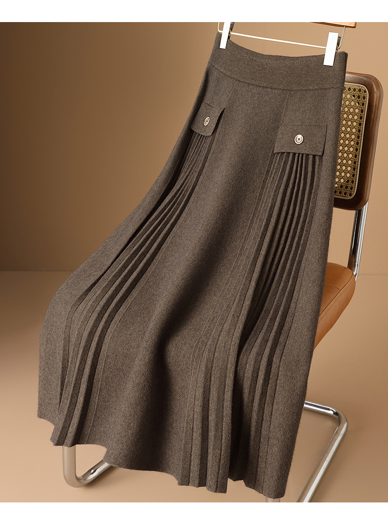 高品質のアセテート混紡カシミヤスカート、上品で着痩せ効果があり、どんなスタイルにも合うAラインの秋冬ミディ丈スカート、ドレープ感あり
