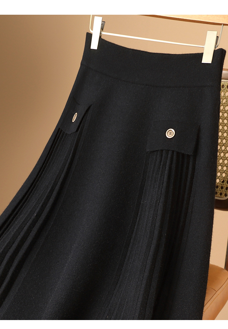 大きいサイズの太ったmmのウールのニットの半身のスカートの女性の秋冬の厚いaの字の垂れ下がった中の長いウエストのスカートのロングスカートのファッション