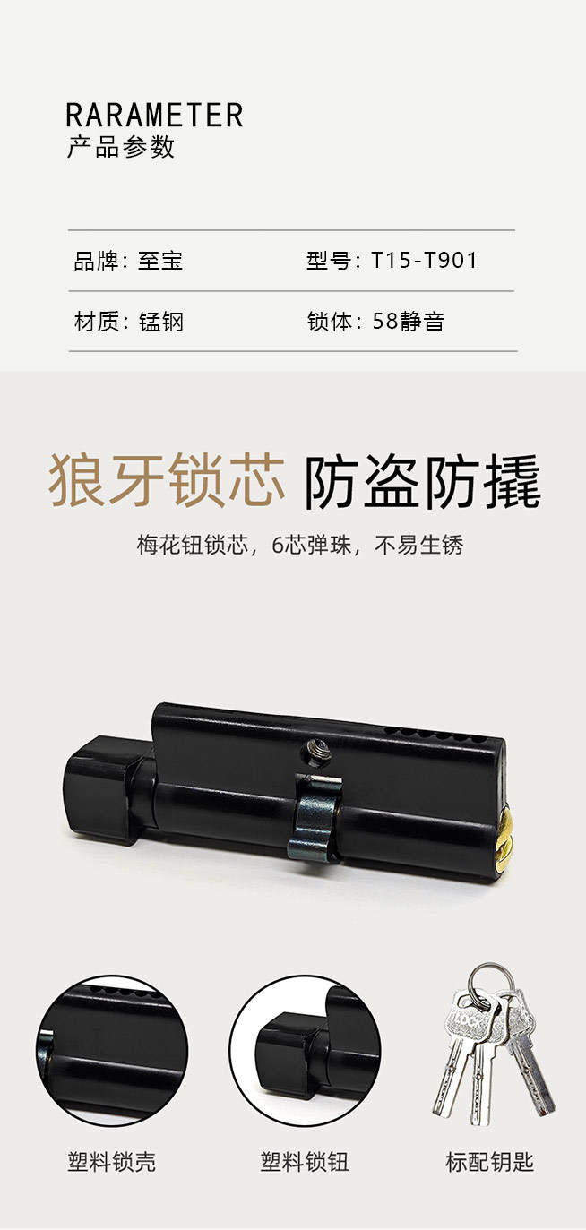 58錠芯汎用型木戸室内ドア寝室ドアアルミ合金錠芯家庭用部屋ドア錠芯部品卸売り