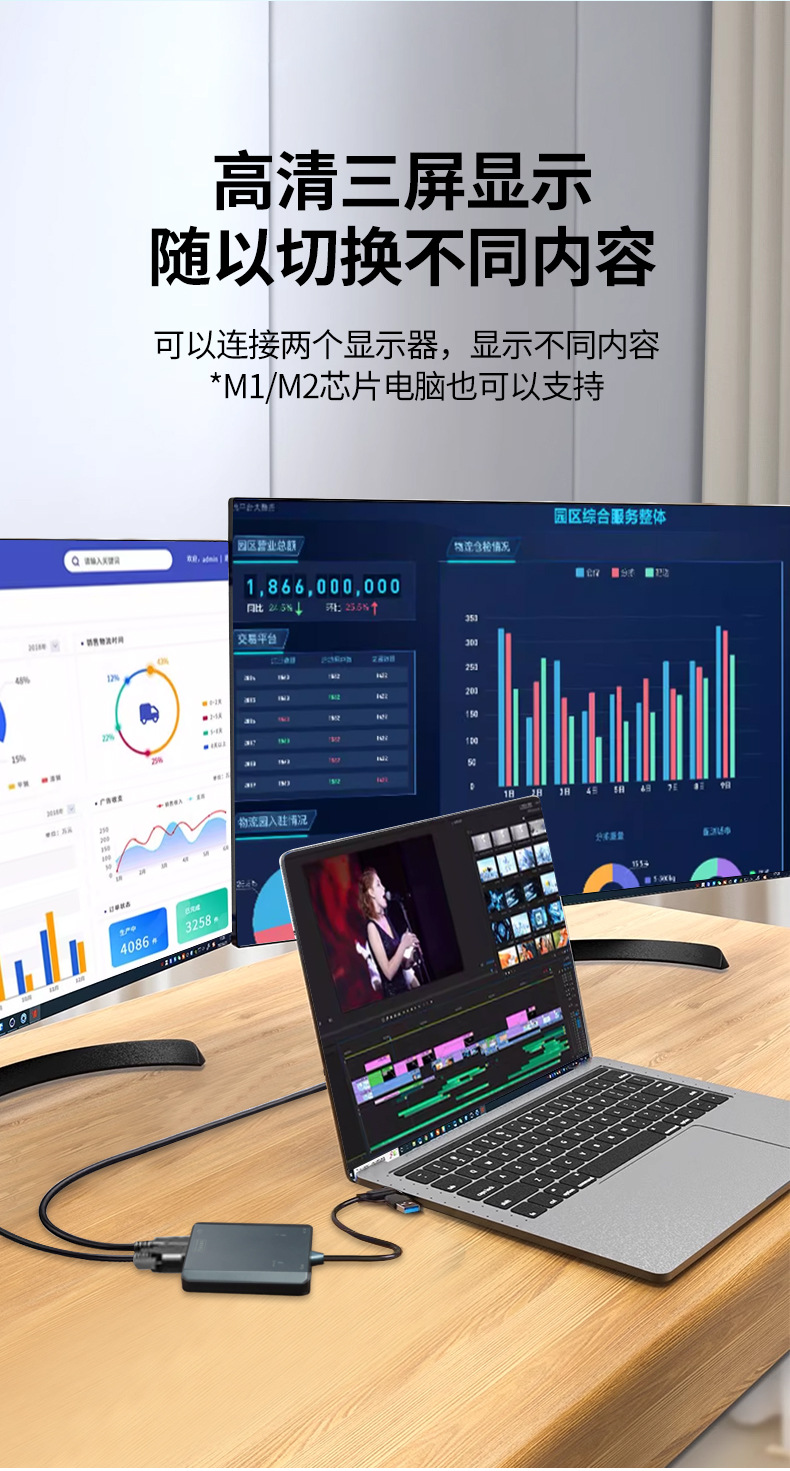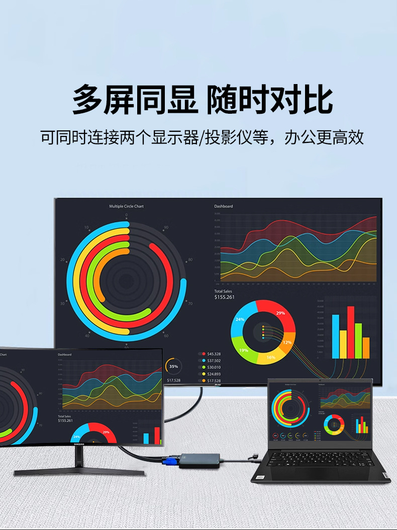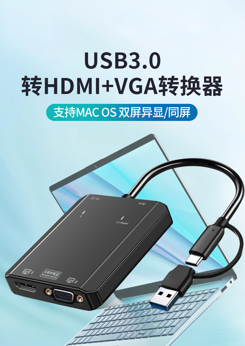 USBコンバーターtypecからHDMI+VGAへのスクリーン投影M1M2プラットフォームプロジェクター多インターフェースディスプレイ