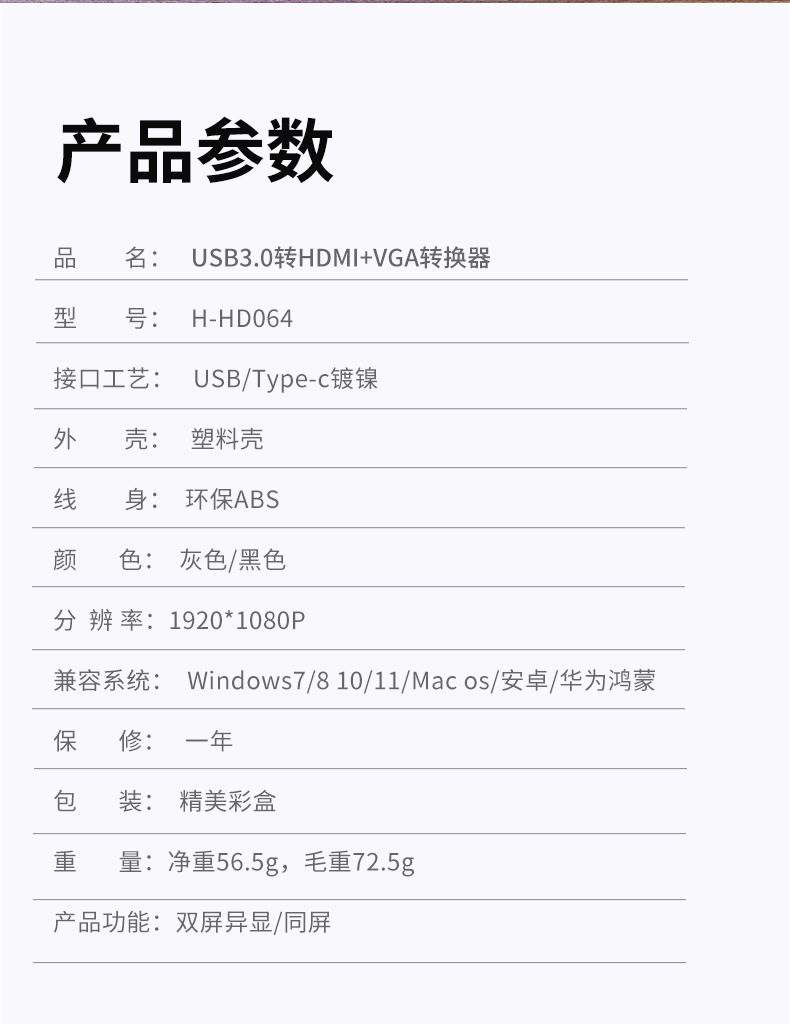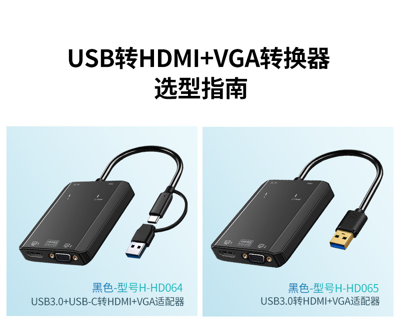 USB3.0/Type-c to HDMI+VGA-ブラック,USB3.0 - HDMI+VGA-ブラック