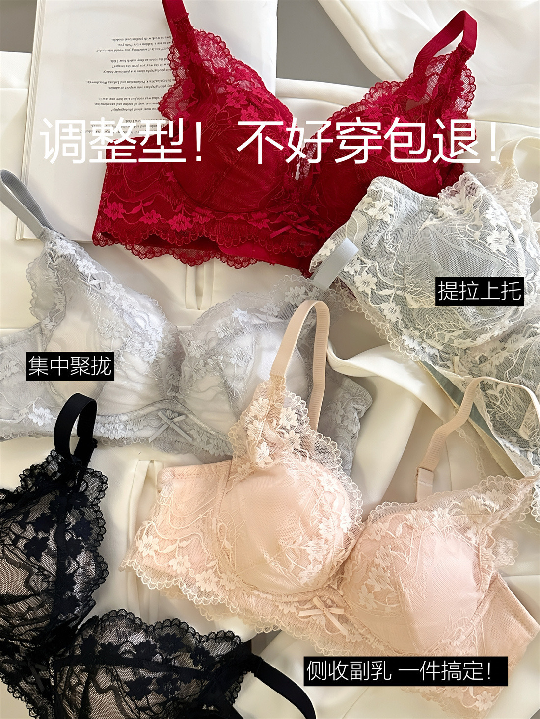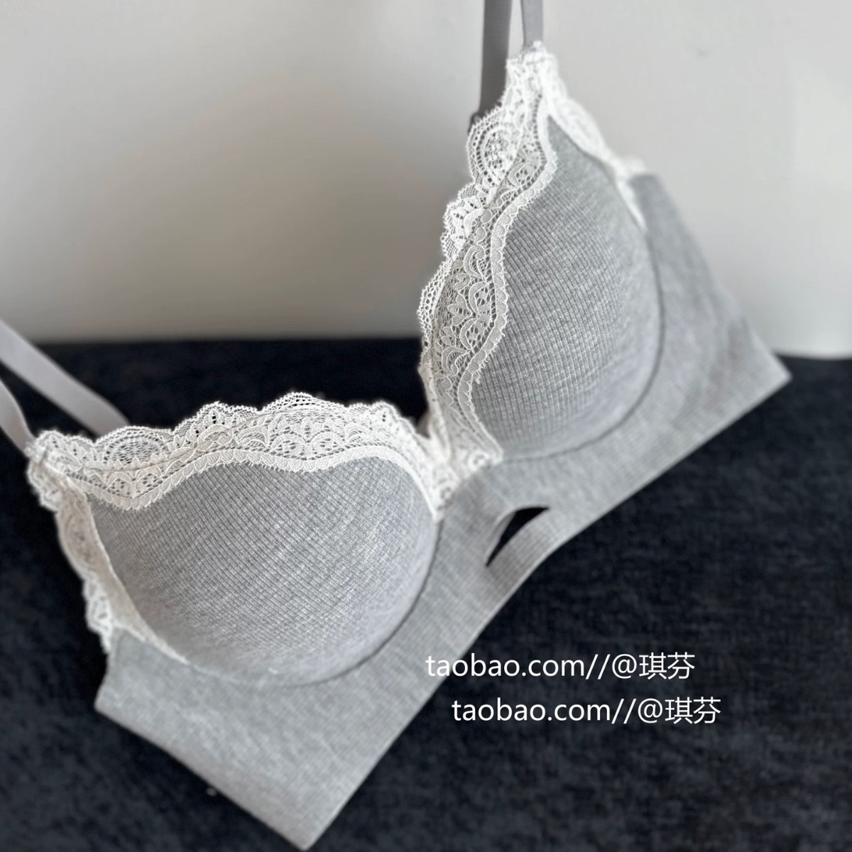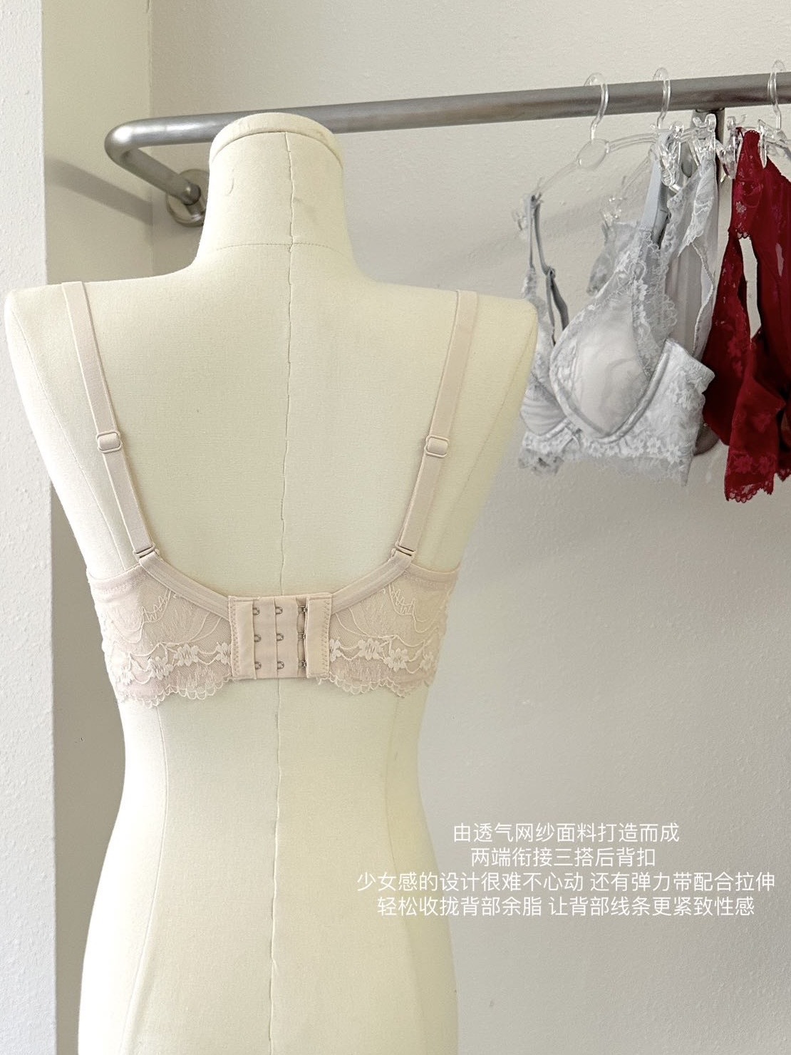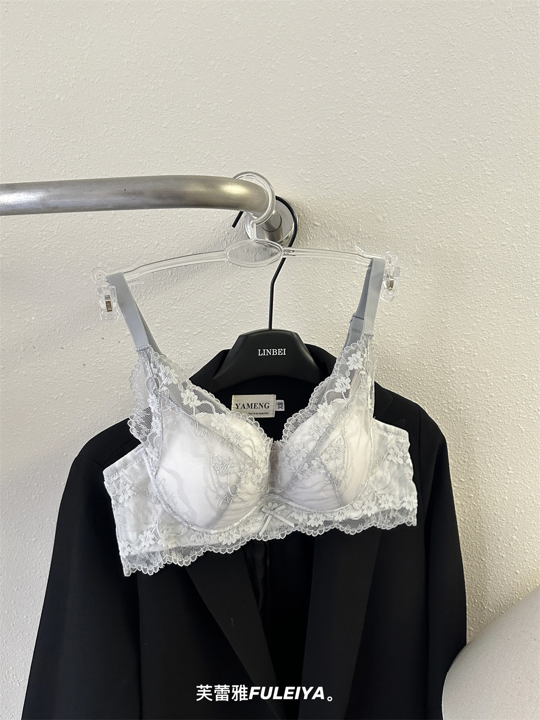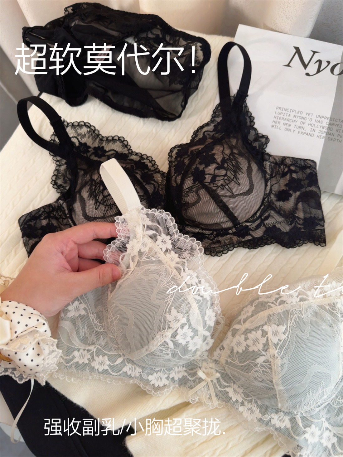 月织纱梦~法式蕾丝缎面内衣女小胸聚拢柔软莫代尔无钢圈文胸套装