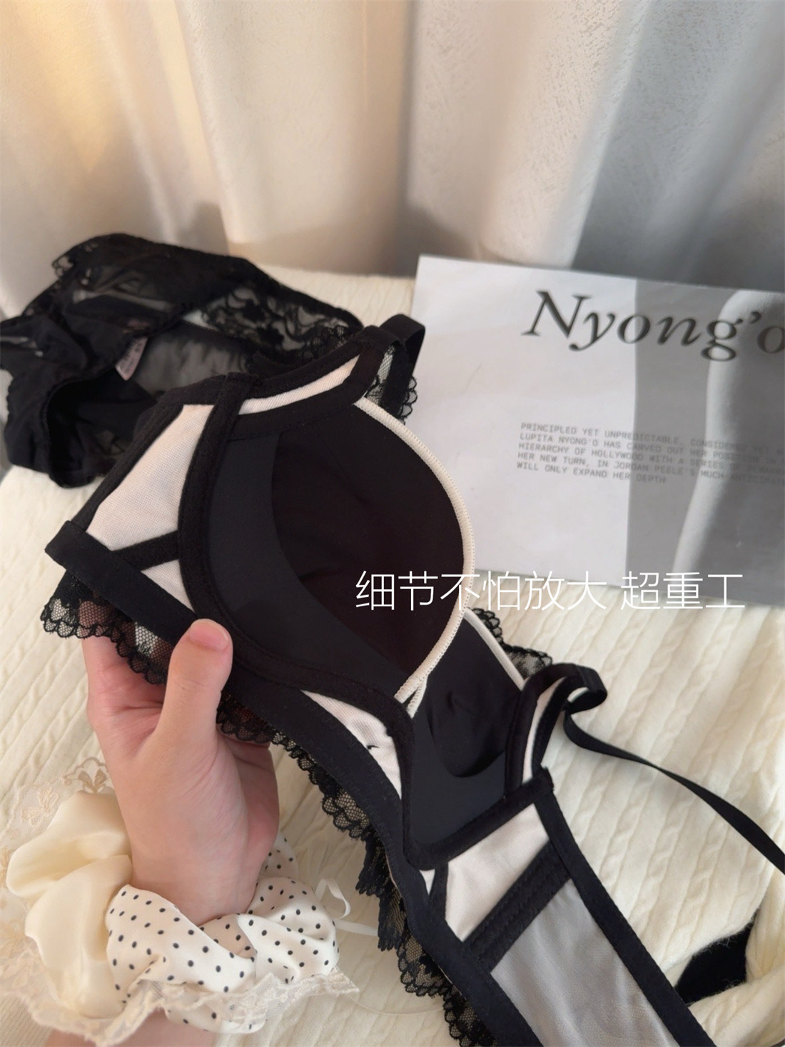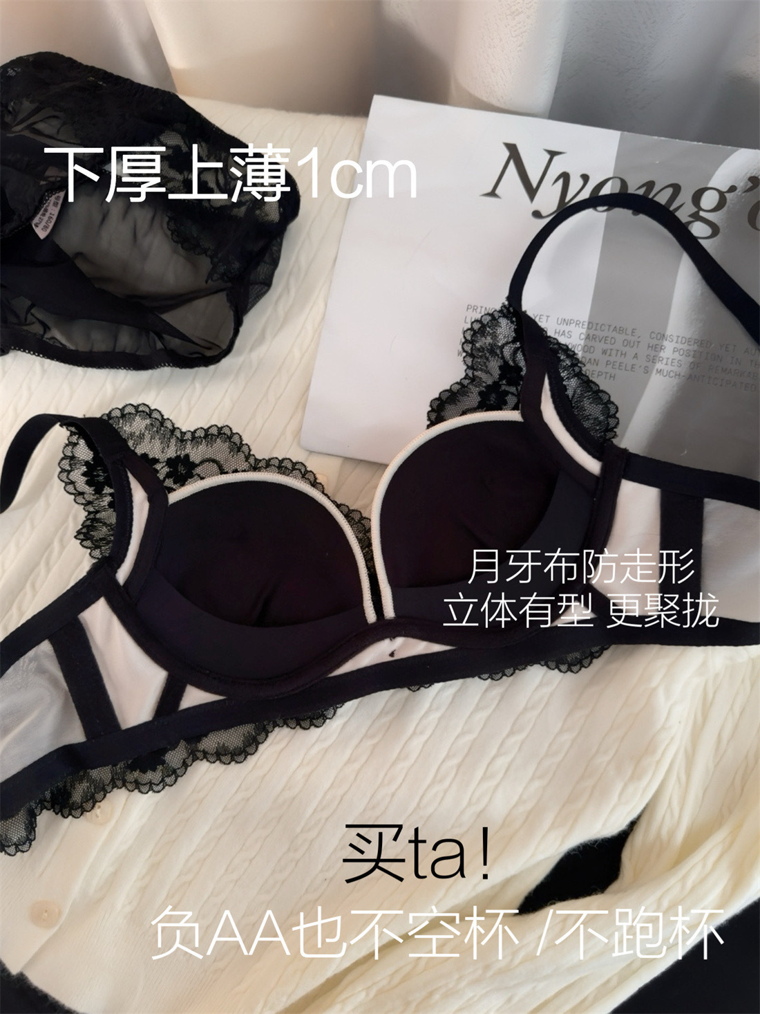 Kang Hou Qianjin セレブ ストラップレス 下着 女の子 フレンチ サテン 薄いカップ 貧乳 プッシュアップ ブラセット