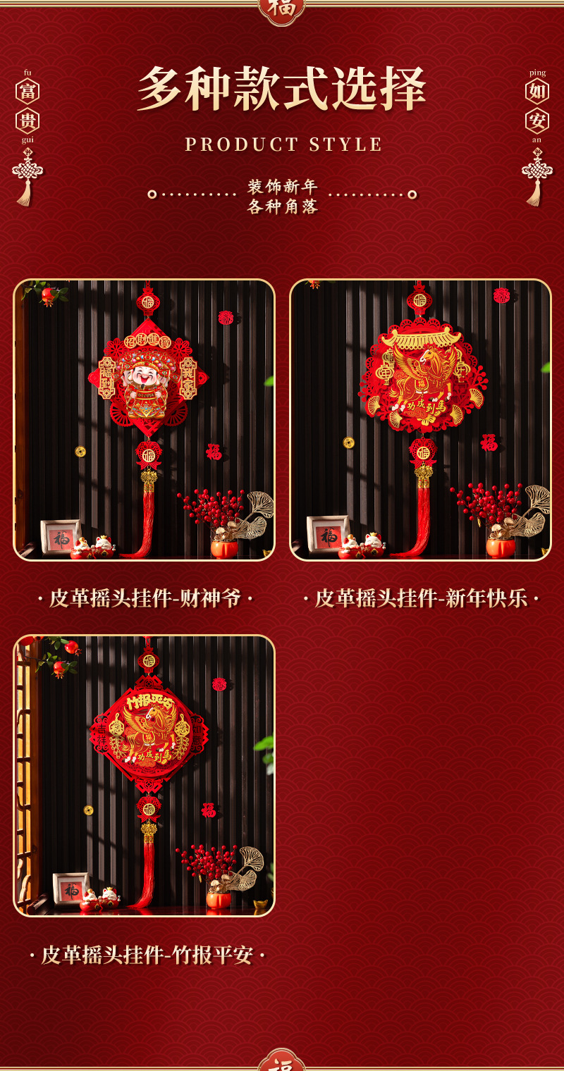 竹の平和の報 - 立体首振りペンダント(フック付き),謹賀新年 立体ボブルヘッドペンダント(フリーフック),福の神 立体首振りペンダント(フック付き),小さなフック