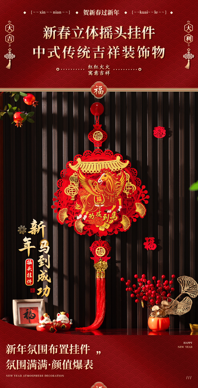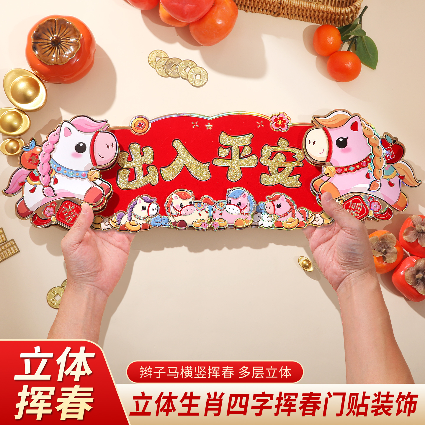 2026新款马年新春大门四字小对联客厅喜庆装饰挂饰卡通创意立体