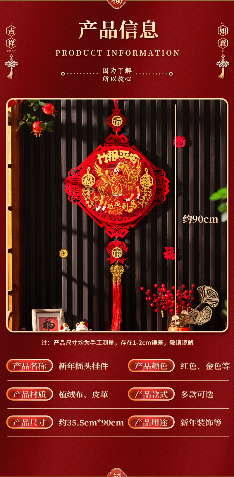 馬年 家庭用リビング立体揺れる布製飾り 新年のお祝い 寝室 扇形ドア掛け 雰囲気作り