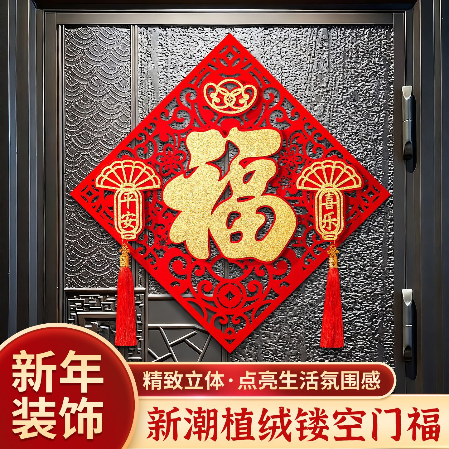 新年福字门贴2026农村庭院迎门墙大号福字立体绒布春节高档装饰品