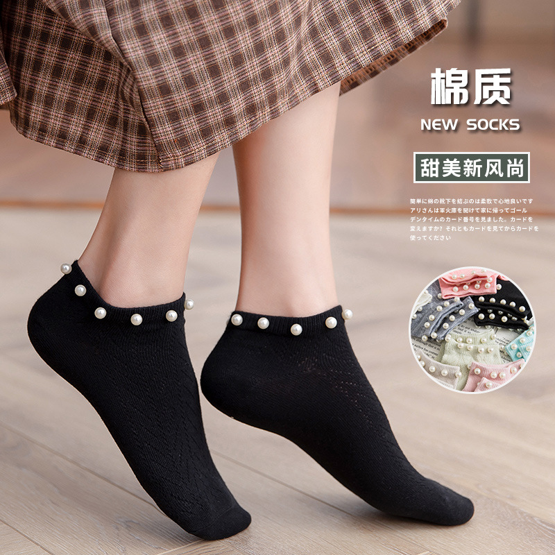 春の新商品の真珠の女船の靴下の日本の小さい清新な少女の風の女性のソックスの浅い口のレースのショートソックスの女性の靴下
