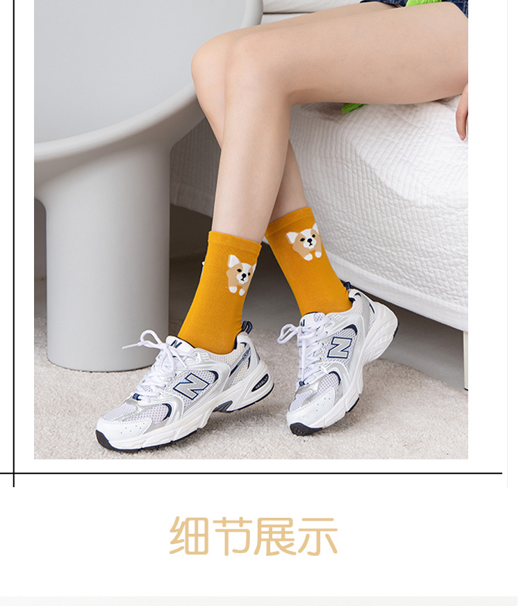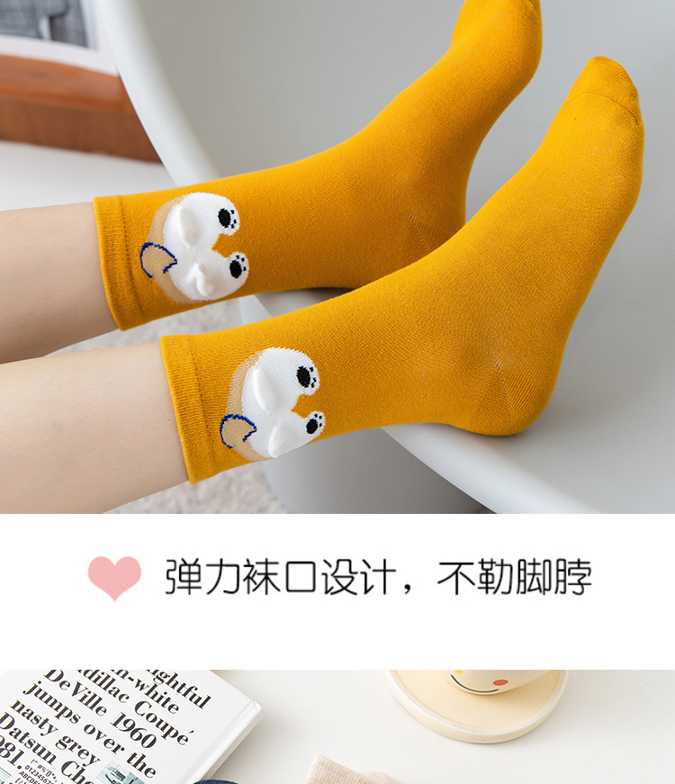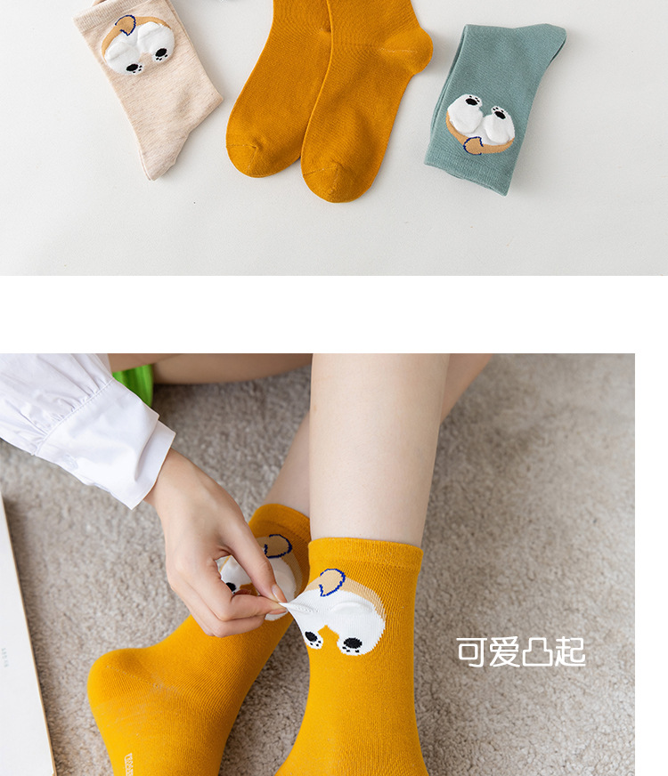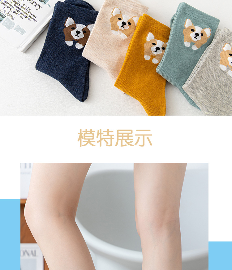 秋の新作韓国風可愛い甘い女子高生風靴下 日本風漫画犬コーギー柄女性用ミドル丈綿靴下
