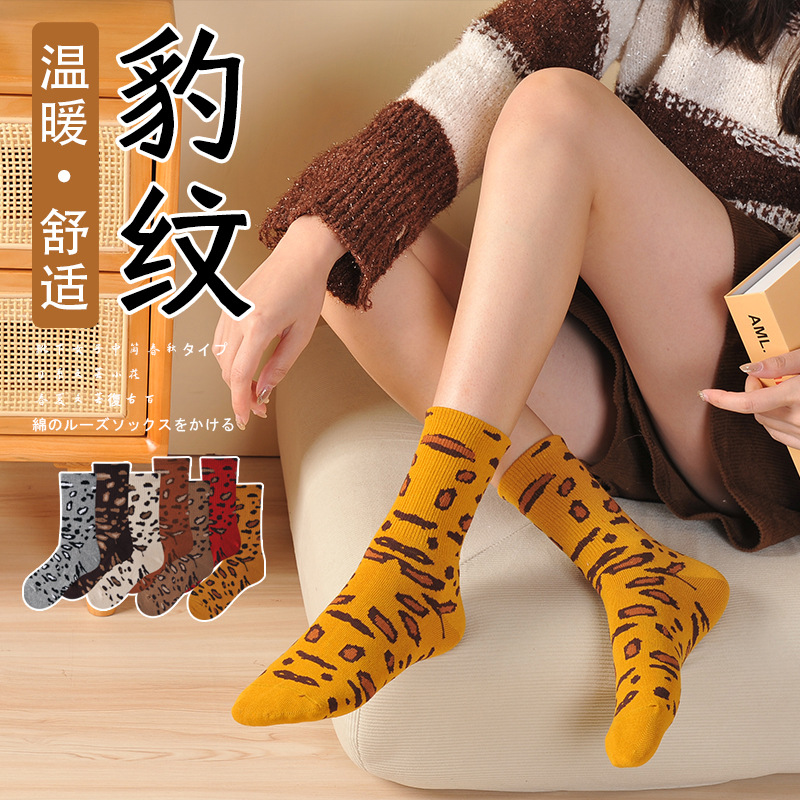 秋の新商品はヒョウ柄のストッキングを厚くします。