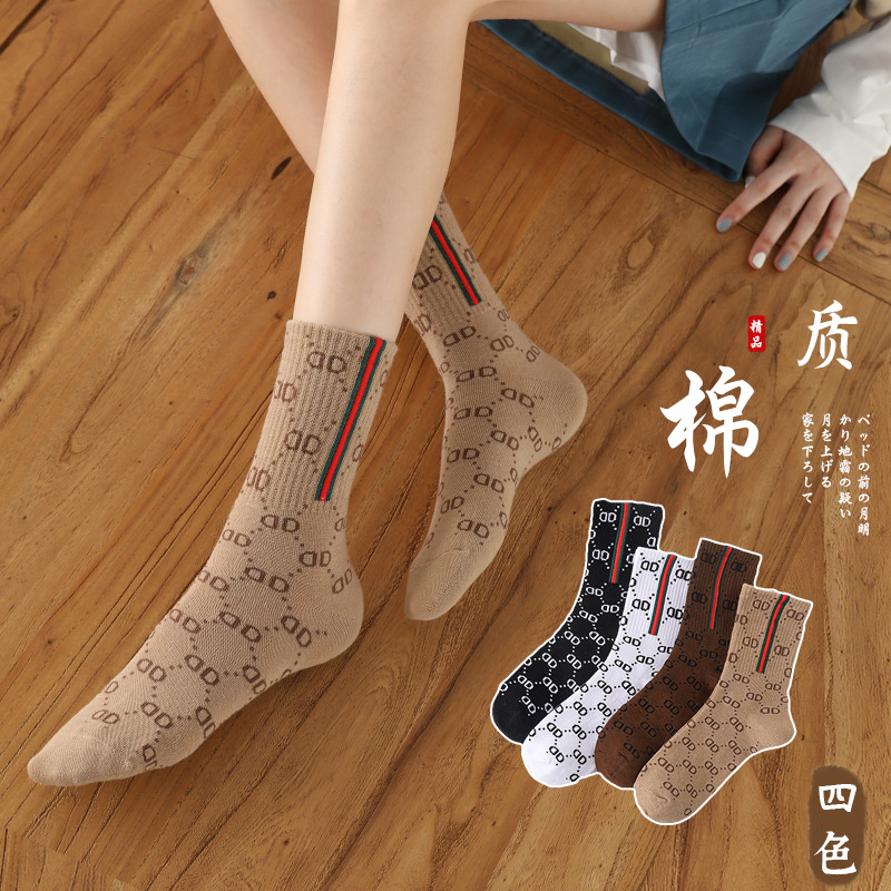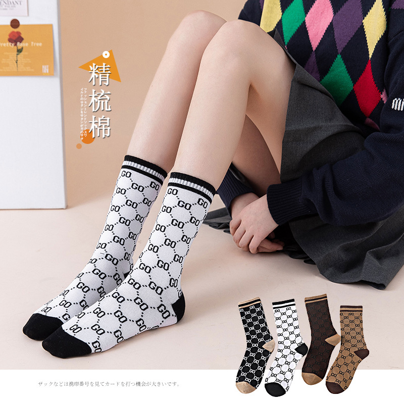 秋冬新作トレンドブランド綿靴下 レディース 欧米風インスタ映えネット人気ミドル丈ソックス 万能カレッジ風重ね履きソックス