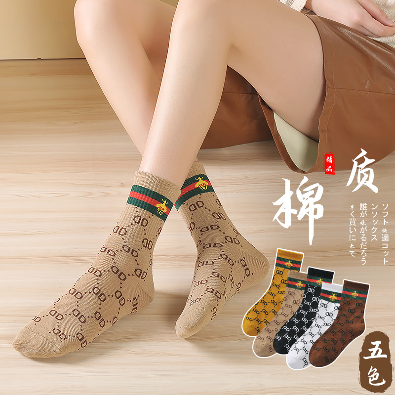 秋の新作 欧米風トレンドブランド 小さな蜂柄 レディースミドル丈コットンソックス 多用途 日本風レターソックス レディース パイルソックス