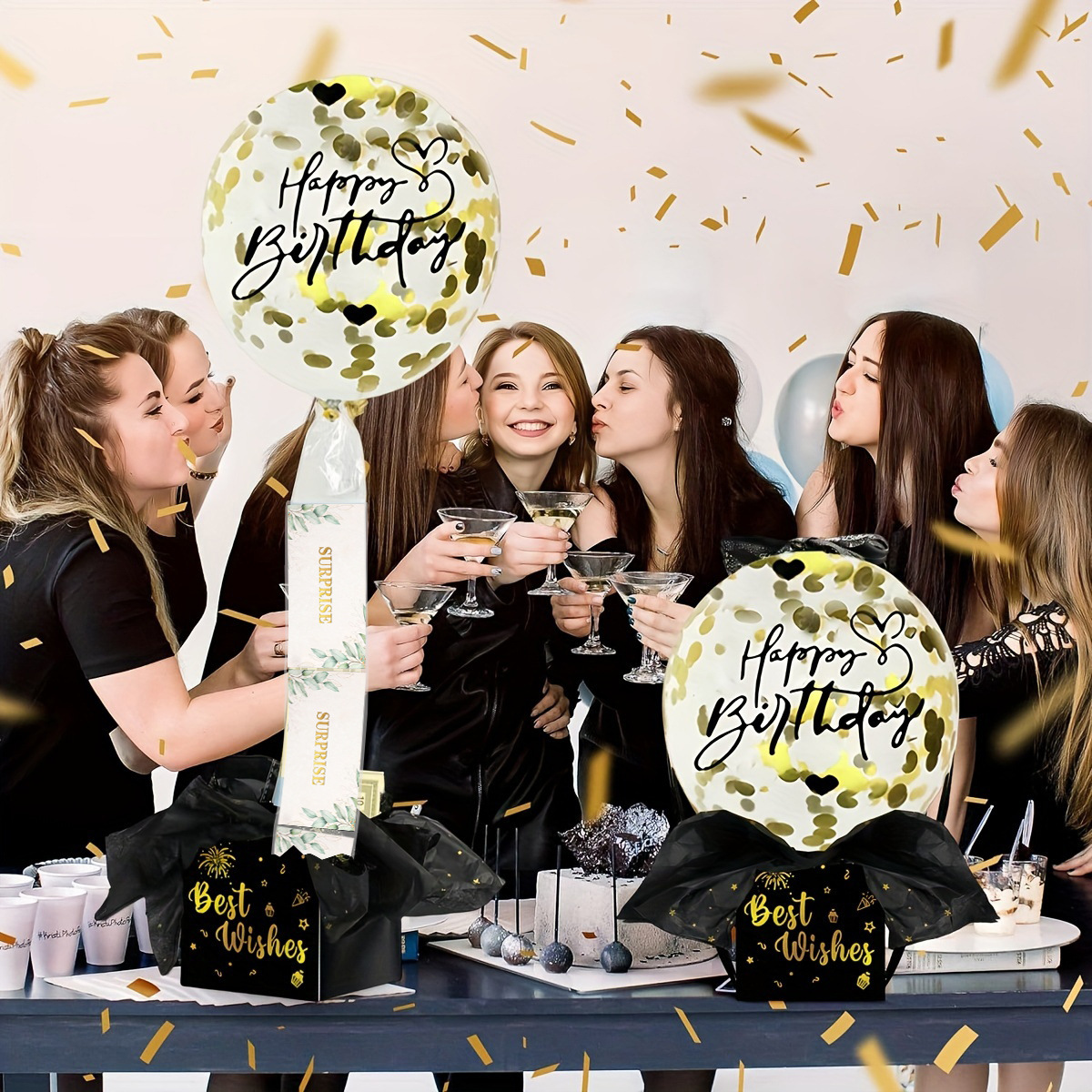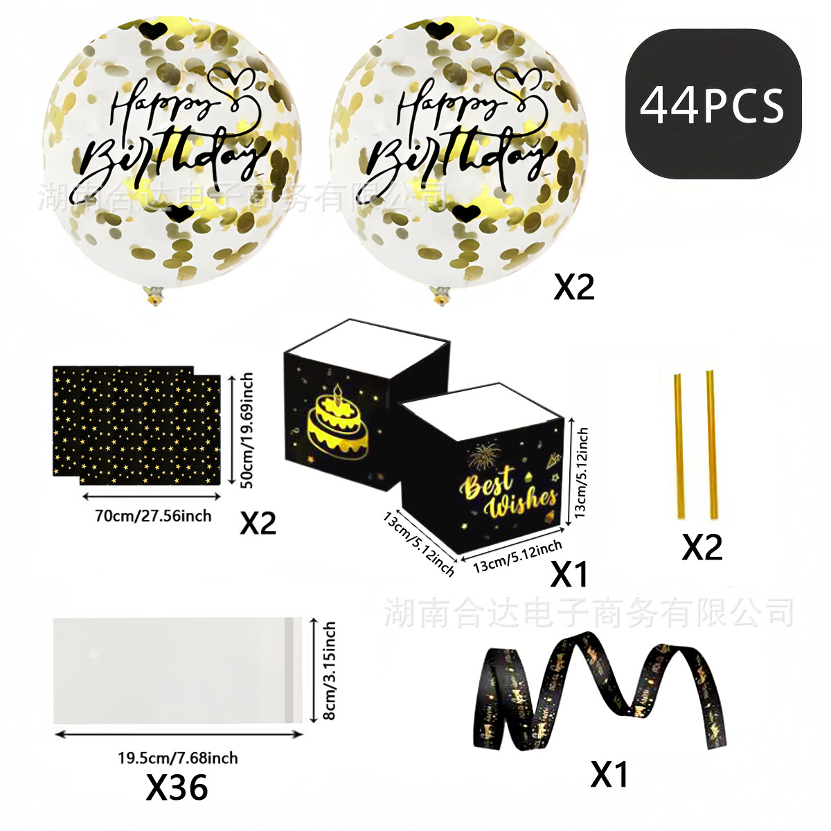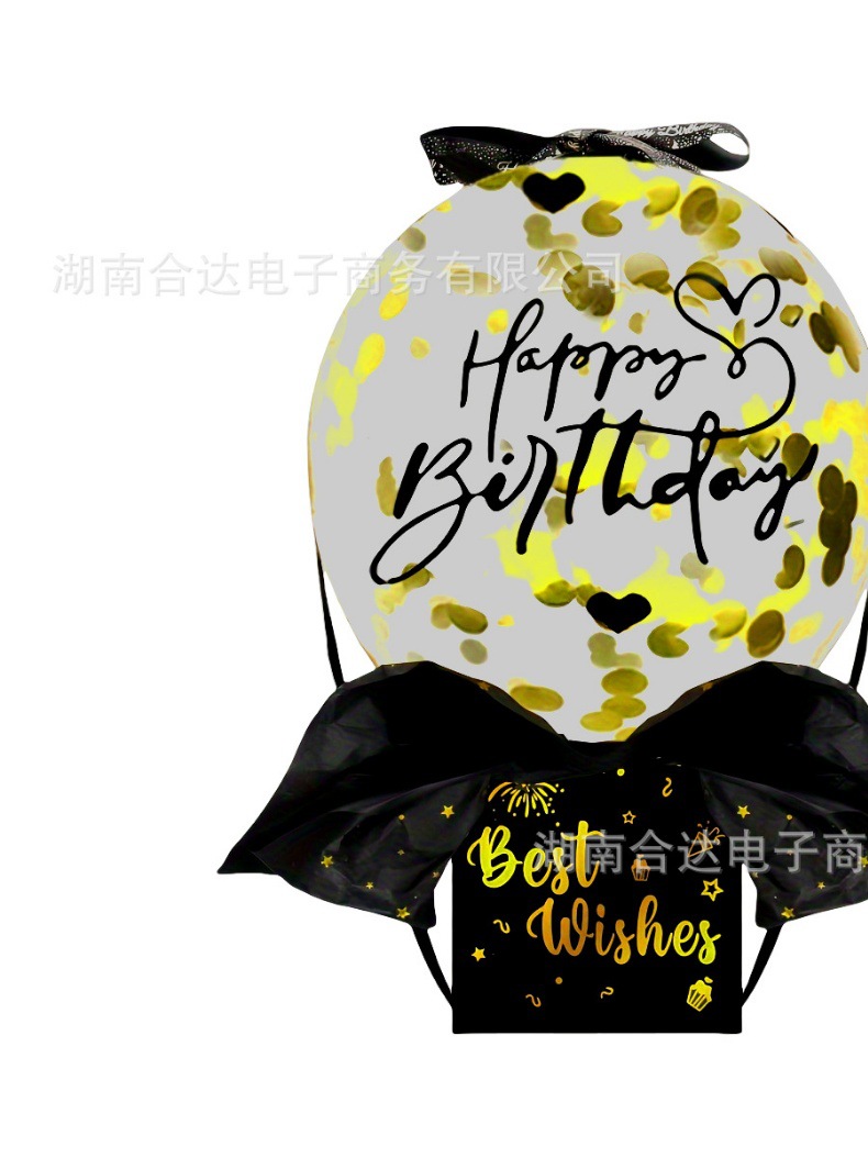 【产品组成】:含1个礼品盒,2个白色气球、1个丝带、2张薄纸,2个金色条条,36张OPP袋子、