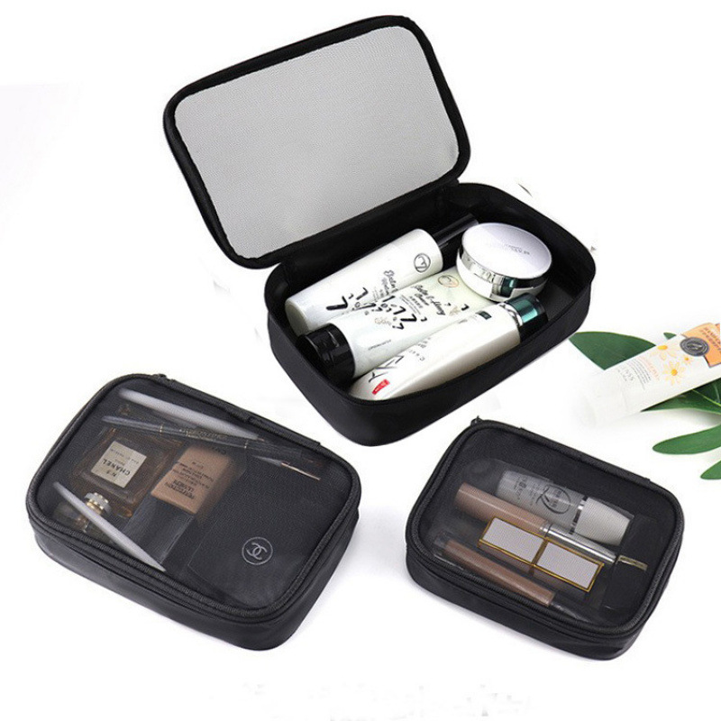 外贸新款便携透明透气网纱化妆包防水大容量随身女旅行洗漱收纳袋