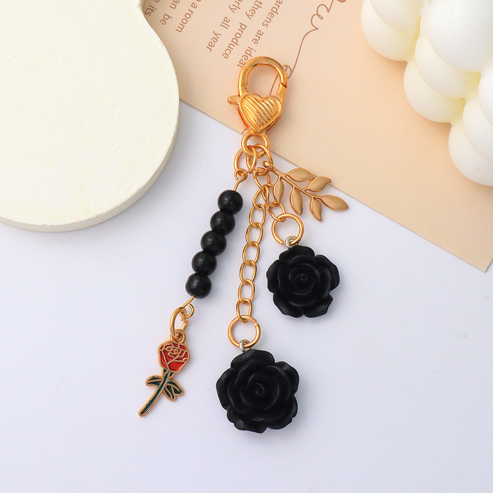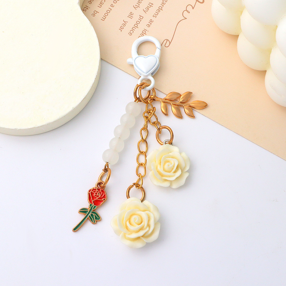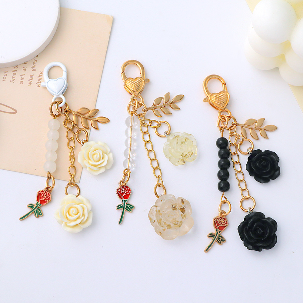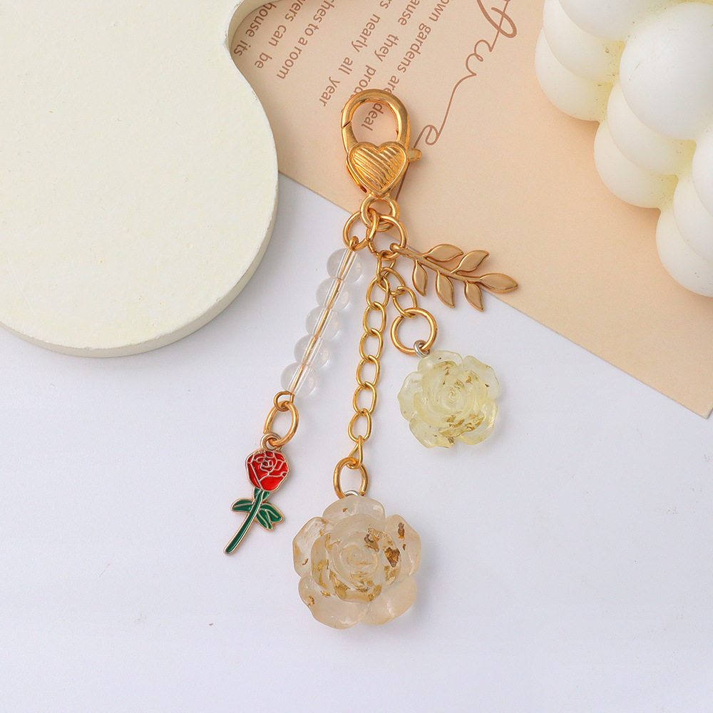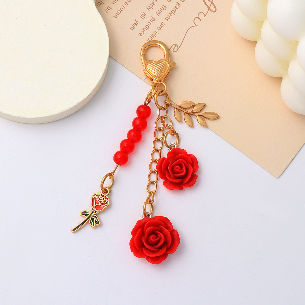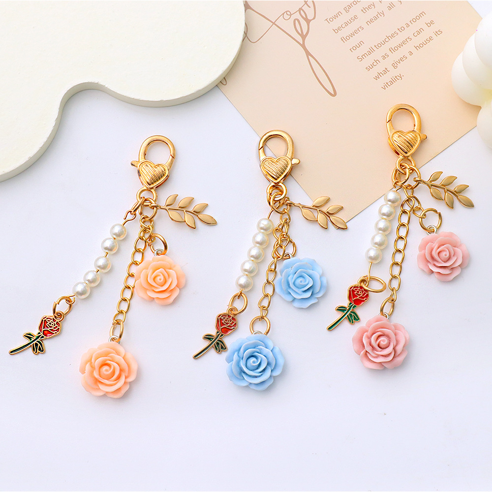 ファッション樹脂のバラの花のタッセルのキーホルダーの甘い少女のイヤホンのカバーのカバンのペンダントの越境のバレンタインデーの贈り物