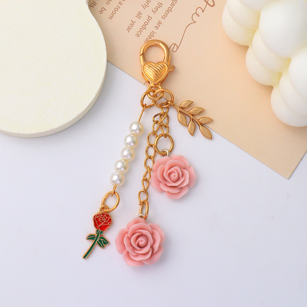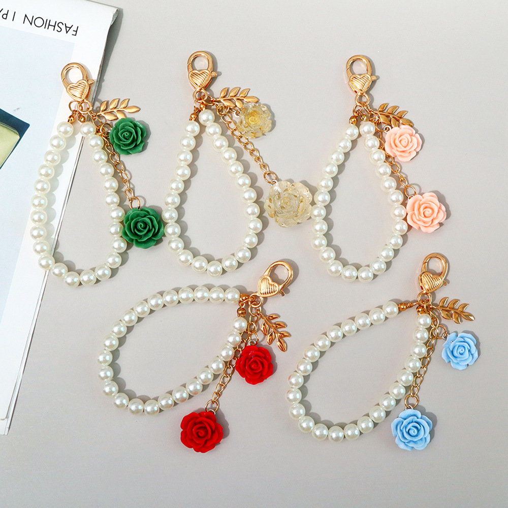 小香風真珠愛山茶花ペンダントキーホルダー少女心ハンドバッグ装飾ストラップ親友プレゼント