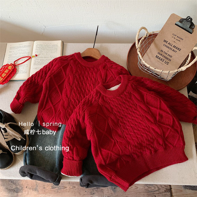 スイートキッズ子供用セーター 冬用 男女兼用 レトロツイスト編みプルオーバー ベビー新年おしゃれニットセーター 年越し服 厚手