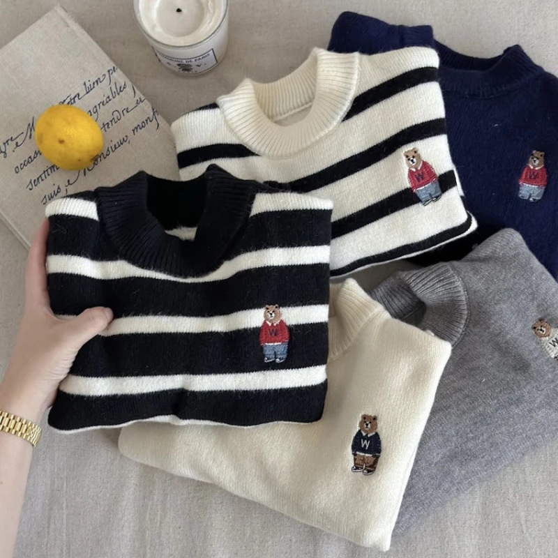 スイートキッズ子供用セーター25秋冬男女兼用新年暖かいニットセーター赤ちゃんストライプベースレイヤーお年賀服