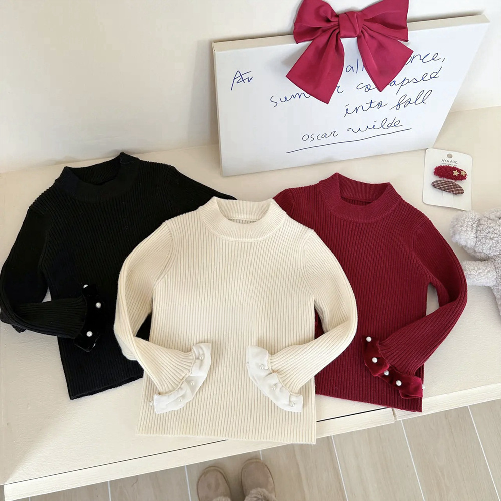 スイートキッズニットセーター 女の子用 2025年冬新作 快適で暖かいインナーセーター 子供用万能セーター インナーセーター