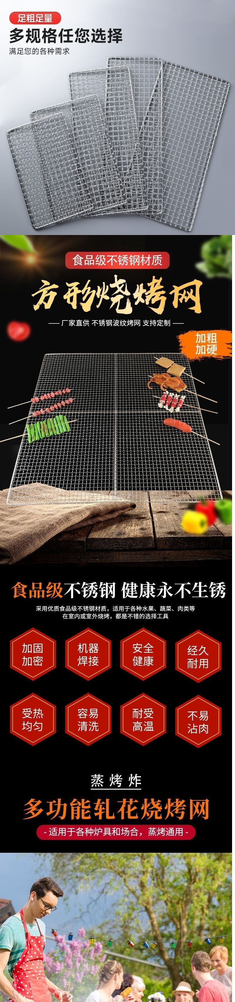 ステンレス鋼グリルメッシュ長方形 304 グリル正方形厚いラウンドメッシュハンドルと足