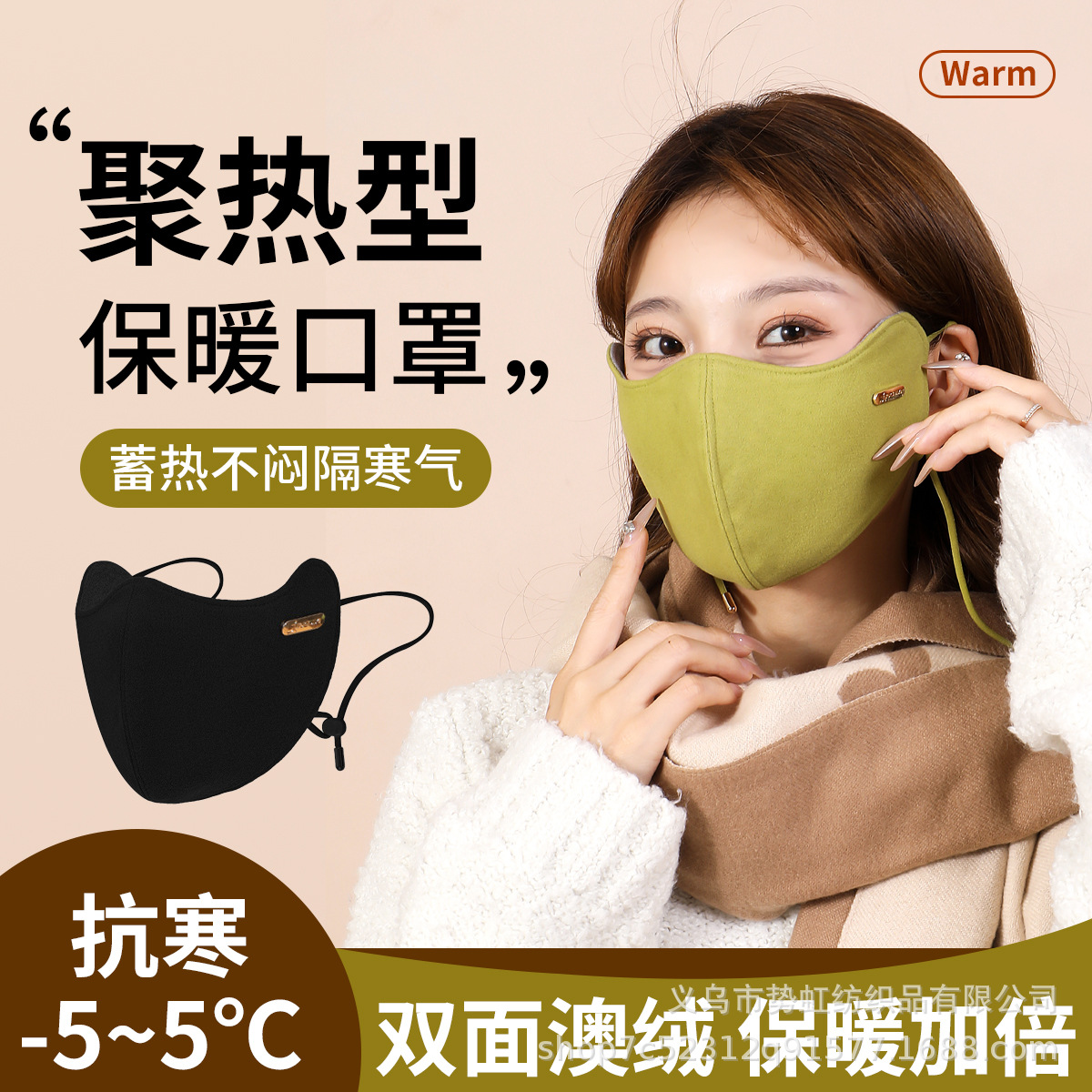 秋冬升级双面澳绒保暖口罩户外透气锁温防寒护眼角高颜值保暖口罩