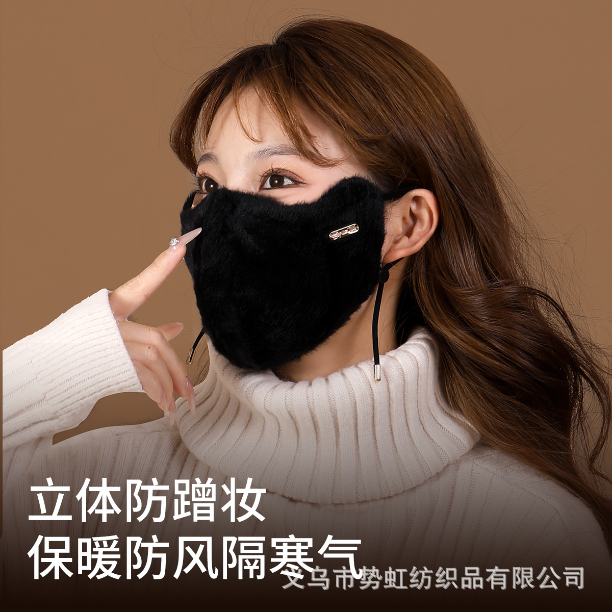 竞加高颜值冬季护眼角口罩防风防寒秋冬保暖加绒加厚兔毛面罩
