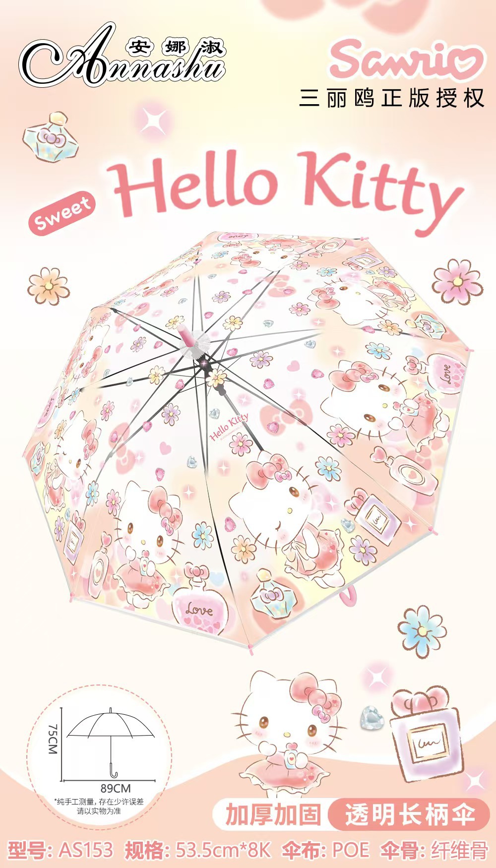 正版三丽鸥KT猫透明伞儿童环保伞可爱卡通直杆长柄自动透明伞