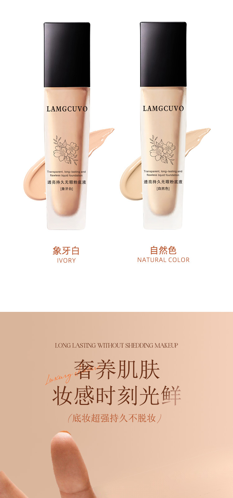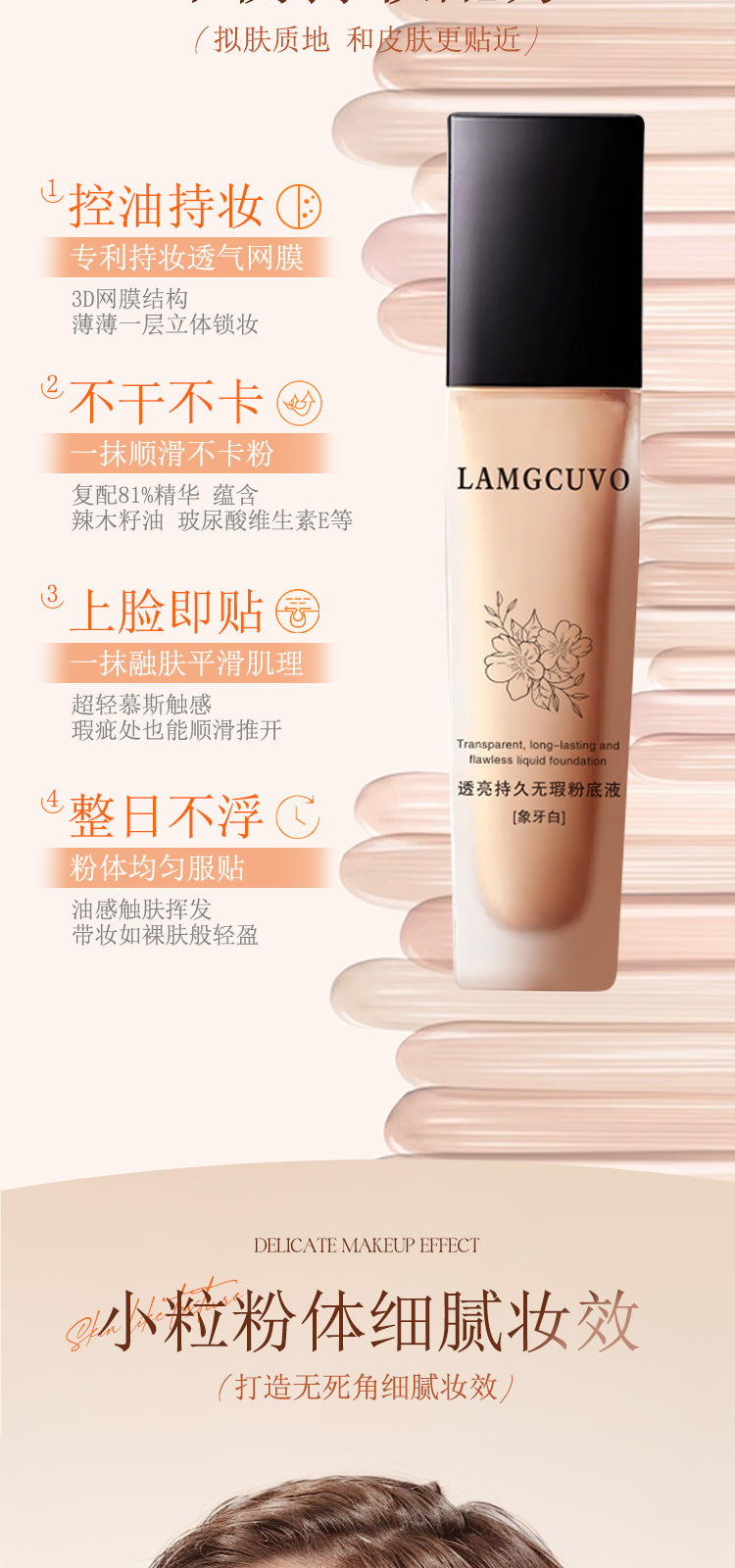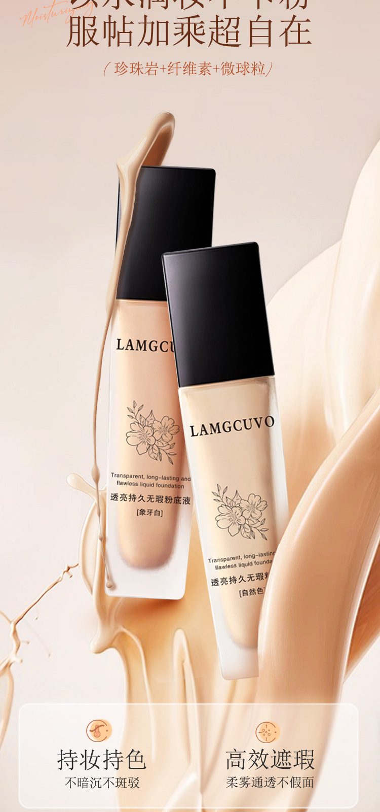 LAMGCUVOは透き通っていて、持続的で無傷のファンデーションを持っています。