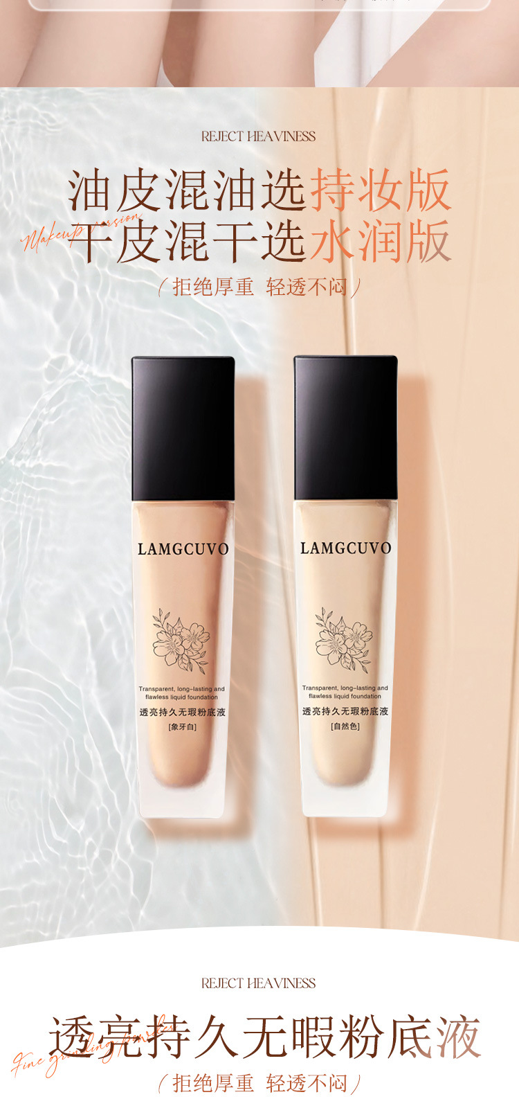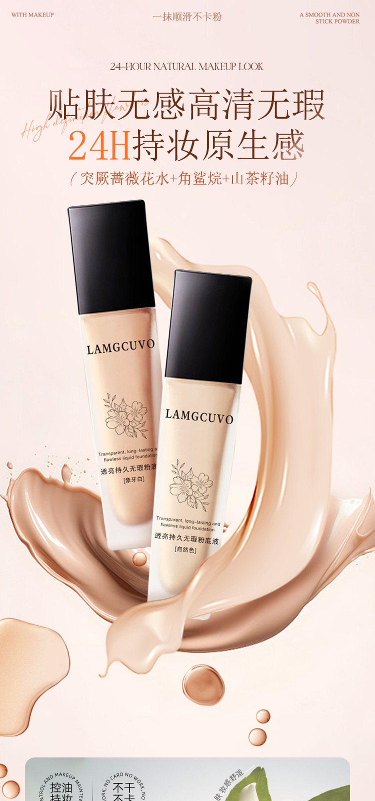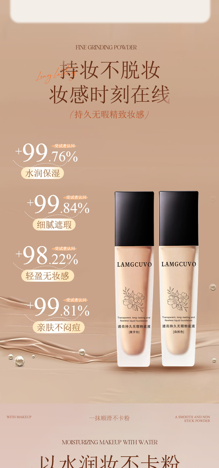 LAMGCUVOは透き通っていて、持続的で無傷のファンデーションを持っています。