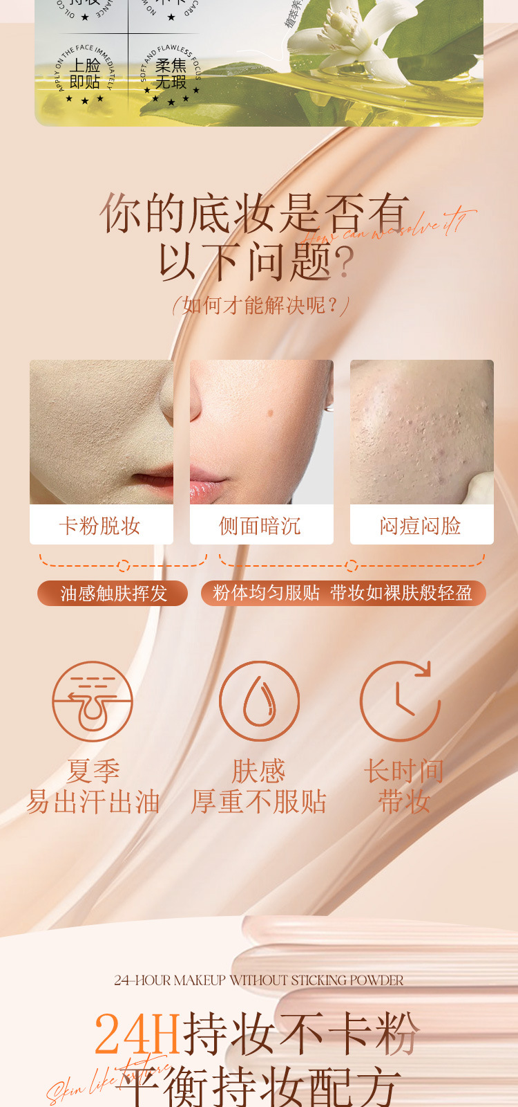 粉底液逆龄女神超模遮瑕不脱妆 跨境爆款4合1仿生变色遮瑕粉底修护可隔离爆款全英文包装 双层粉饼气垫 遮瑕哑光自然控油粉饼学生少女感平价国货 粉底液定制 新一代锁妆粉底液哑光持妆不蹭妆油皮挚选代工贴牌