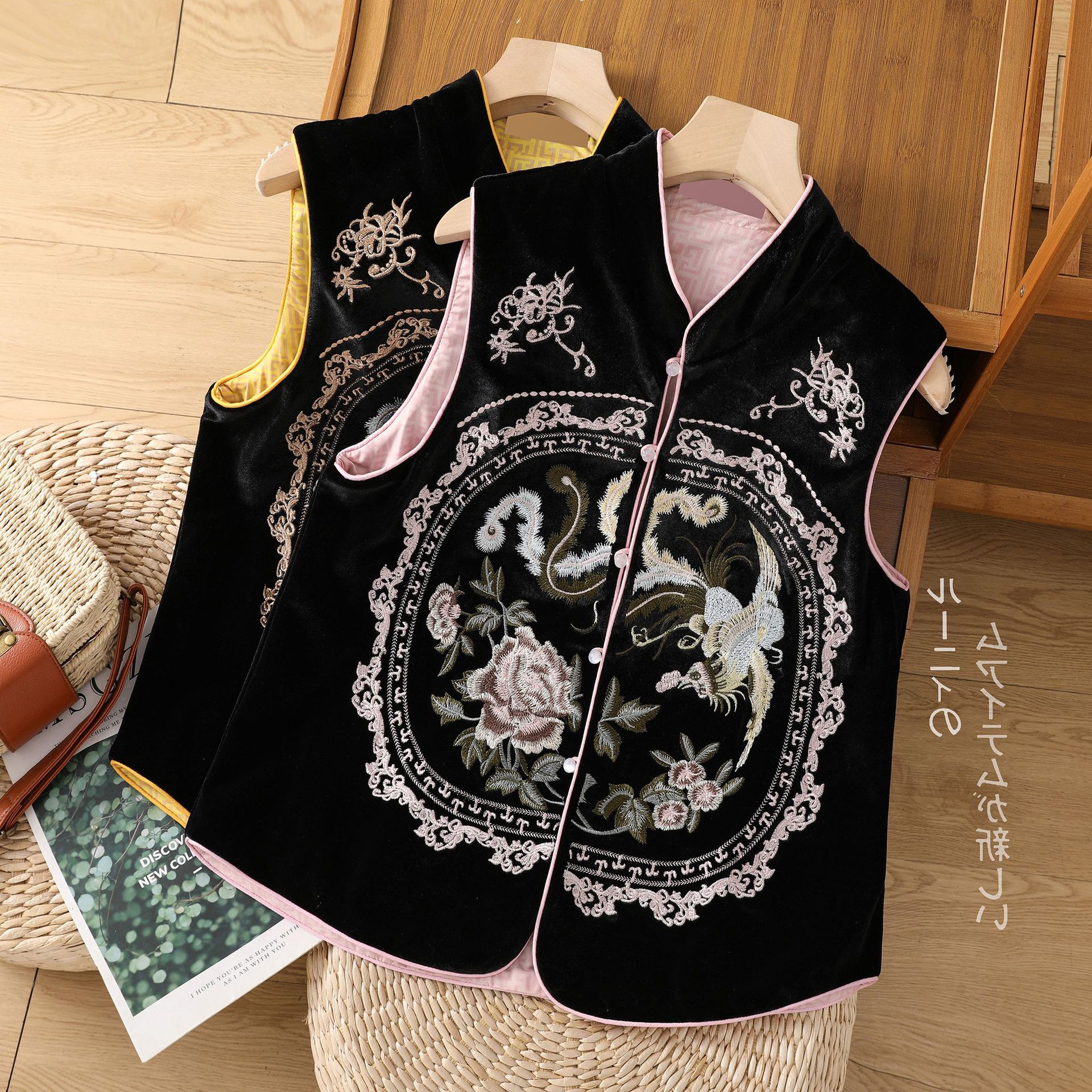 2025 春の新国民風大きいサイズのヘビーエッジ刺繍多用途古典的な小さなベストトップ女性のための