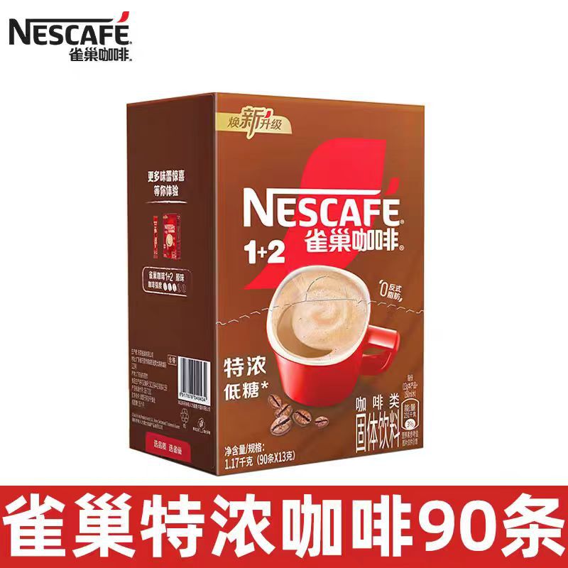 新包装 雀巢咖啡1+2特浓低糖即溶咖啡饮品13克散条装学生备考