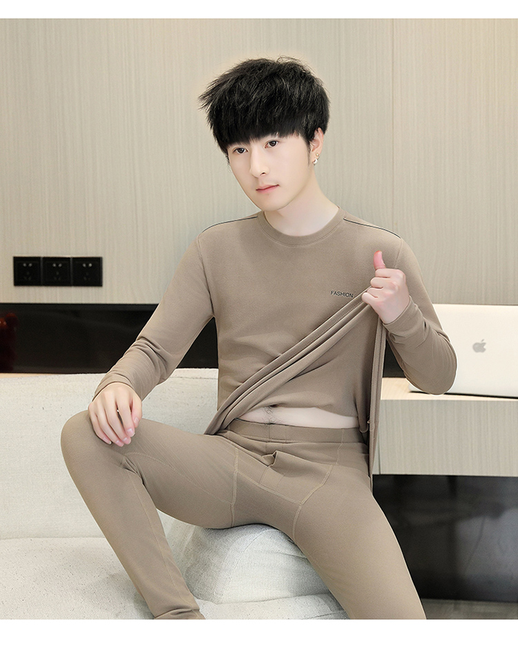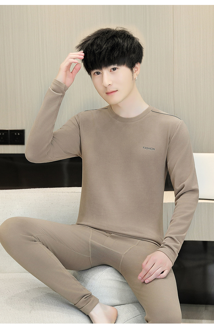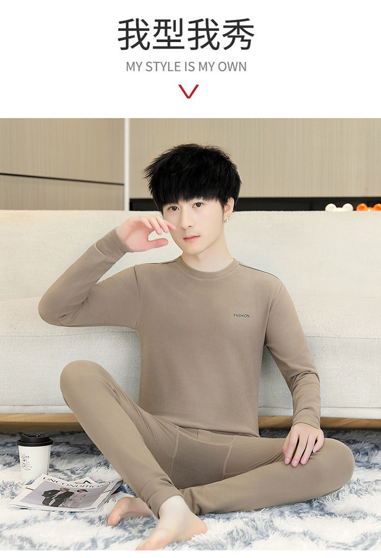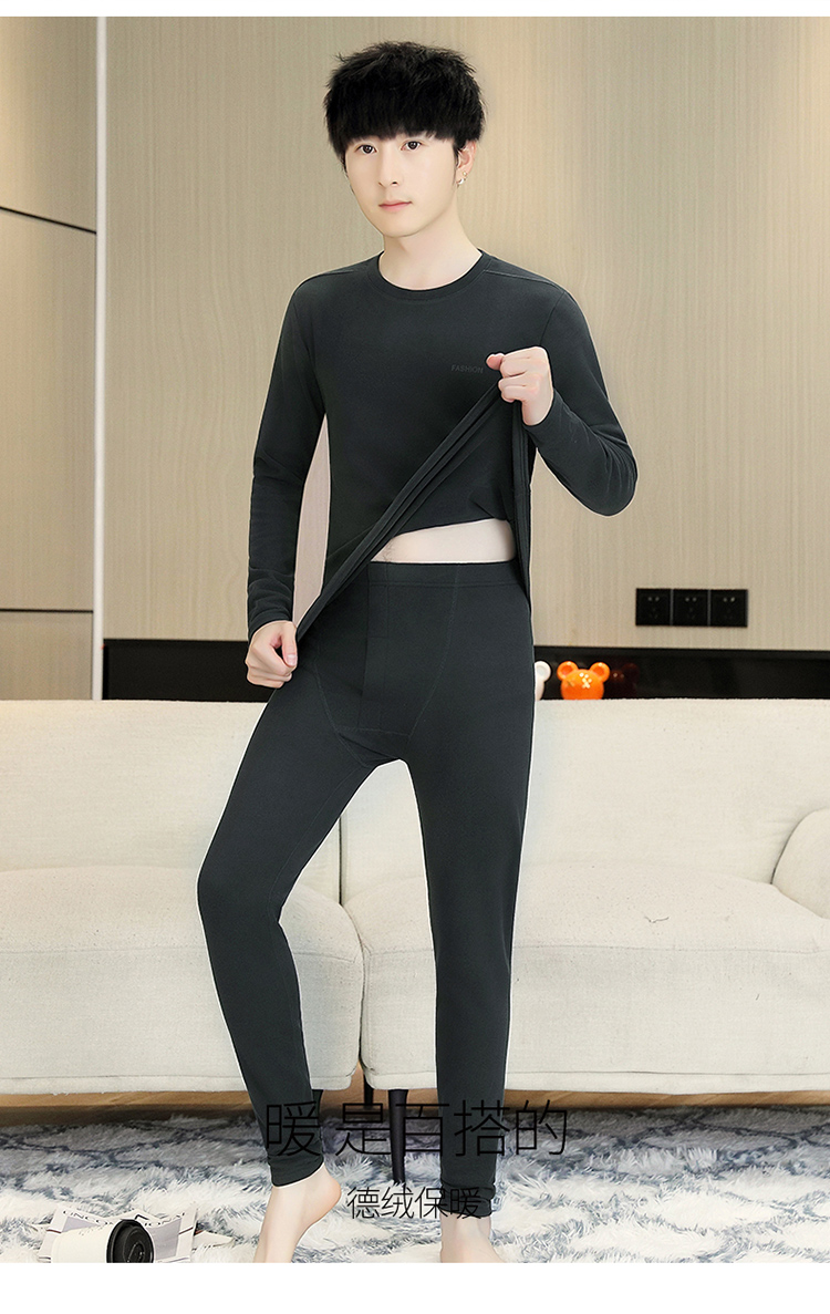 徳絨毛保温下着男性セット2024新型青少年高校大学生ベルベットダウン秋衣秋ズボン
