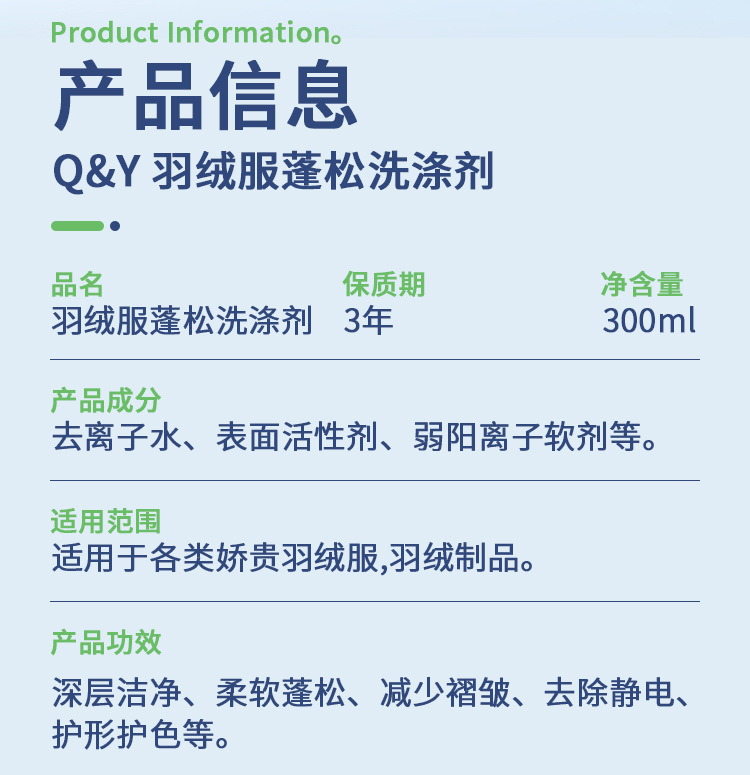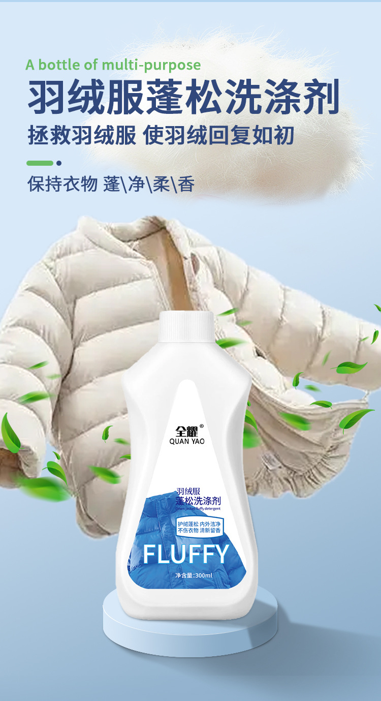 厂家直供羽绒服蓬松洗涤剂300g水洗机洗防结块羽绒服清洁剂去污渍