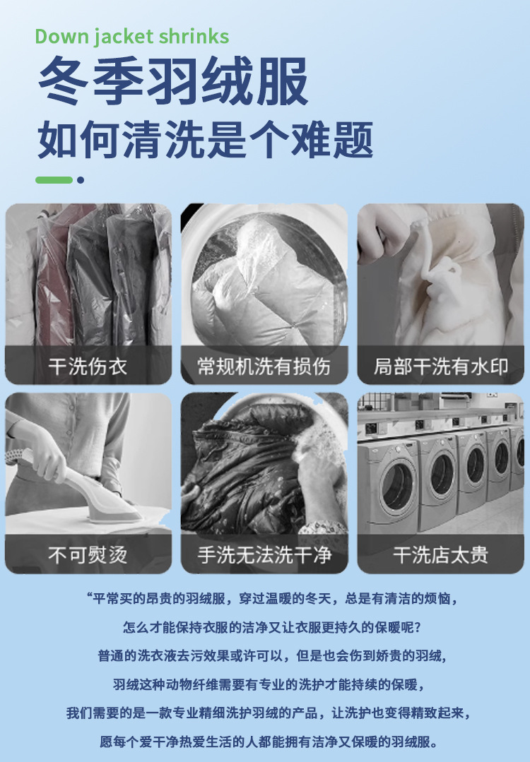 【干洗店同款】羽绒服蓬松洗涤剂水洗机洗去污防结块不易缩水褪色