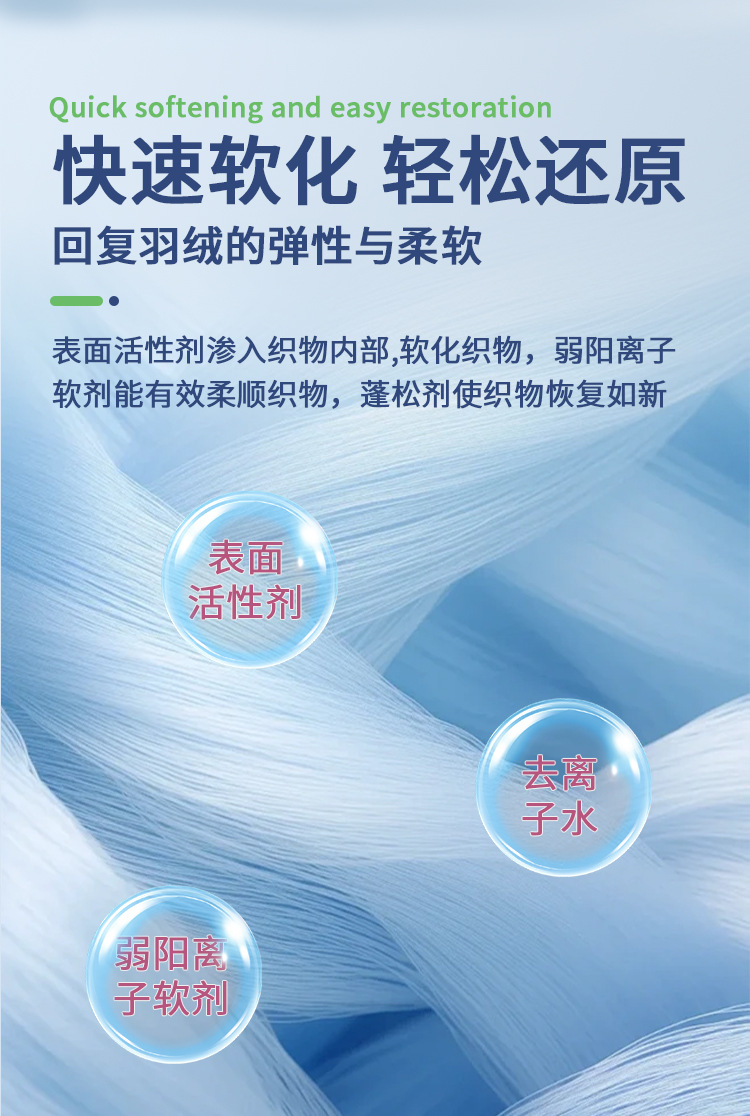 家用羽绒服蓬松洗涤剂衣物膨松剂防结块衣服蓬松剂防缩水还原修复