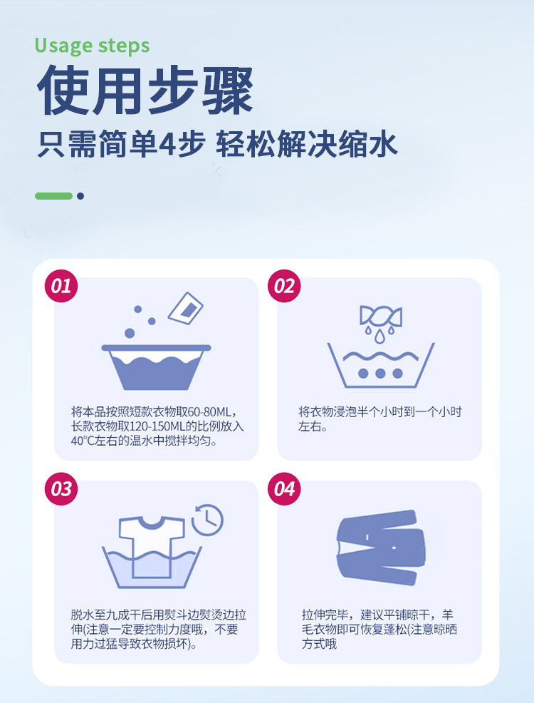 全耀のウールのセーターの縮みの還元の回復剤のカシミヤの修復の拡大の毛のコートの専用の洗剤の代は発見します。