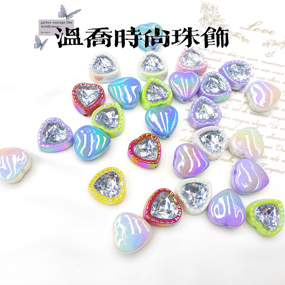 アクリルメッキ愛型カラージルコン縦穴ビーズDIY携帯チェーンビーズアクセサリー