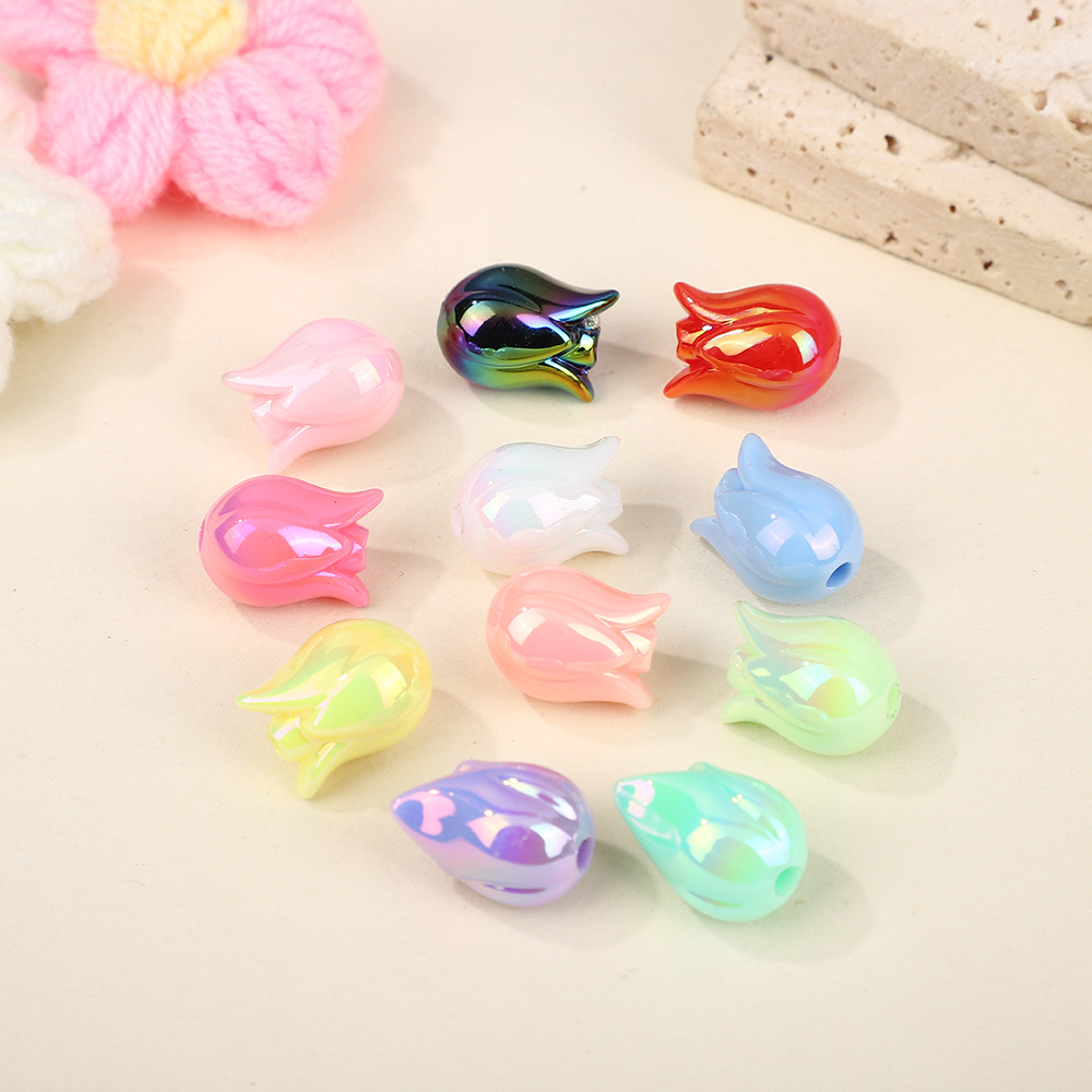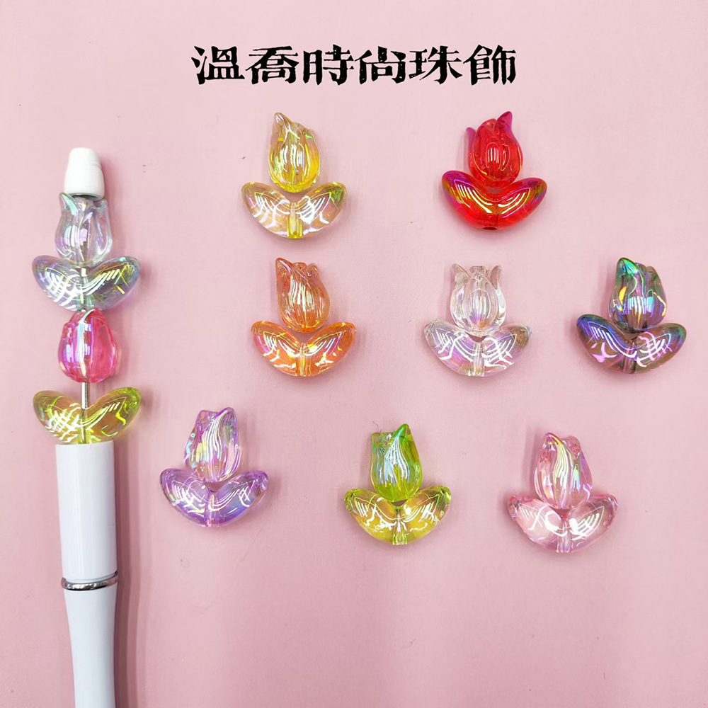 UV実色メッキDIYチューリップと葉ビーズアクリル携帯ひも車掛けキーホルダー部品