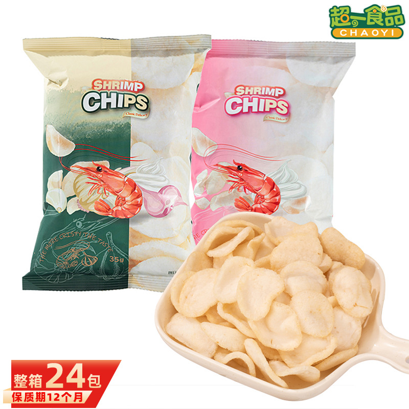 インドネシア輸入ダージ草エビチップスオリジナルガーリック風味ポテトチップスオフィススナックパフスナック卸売