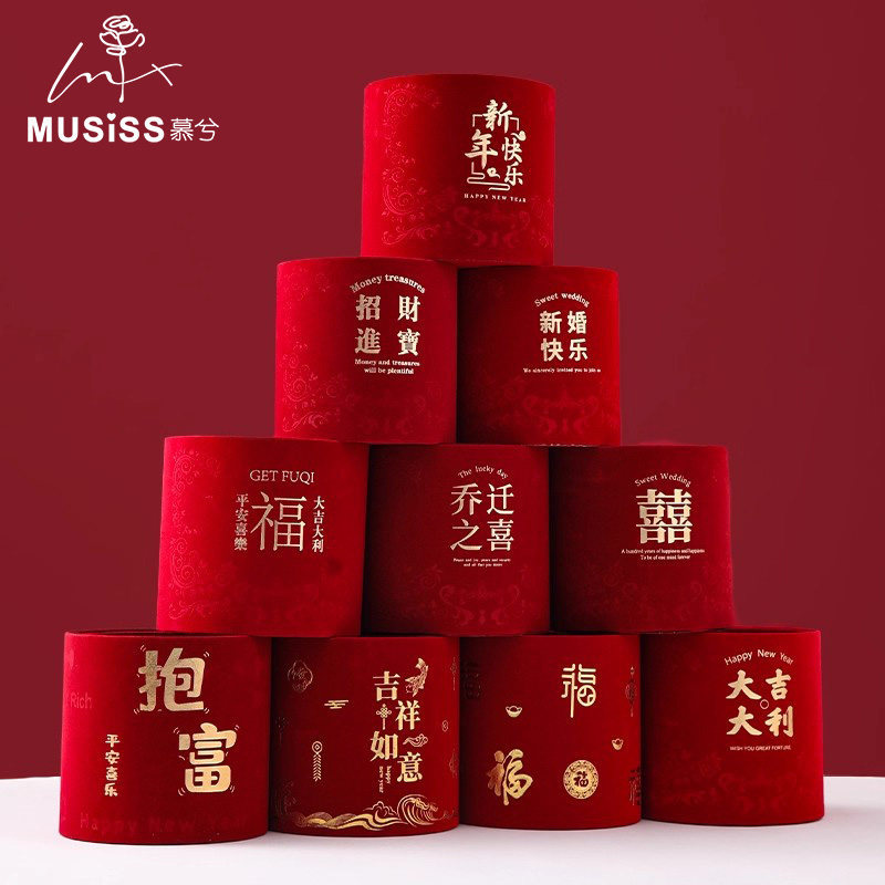 2026新年春节结婚乔迁福桶开业绒布抱抱桶红色装饰插花年宵花福桶