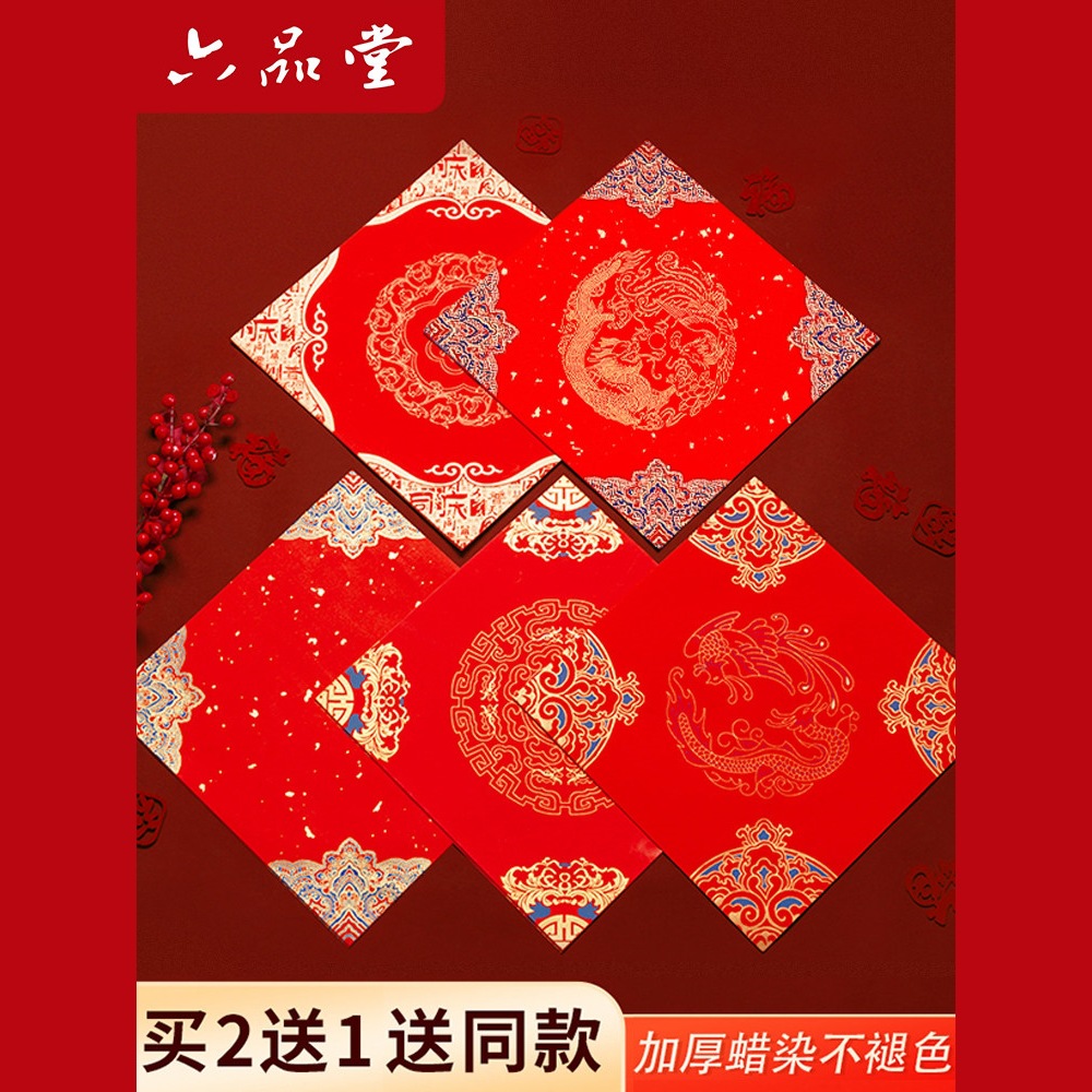 六品堂新年福字红纸红斗方加厚蜡染宣纸对联纸喜庆空白书法2026年