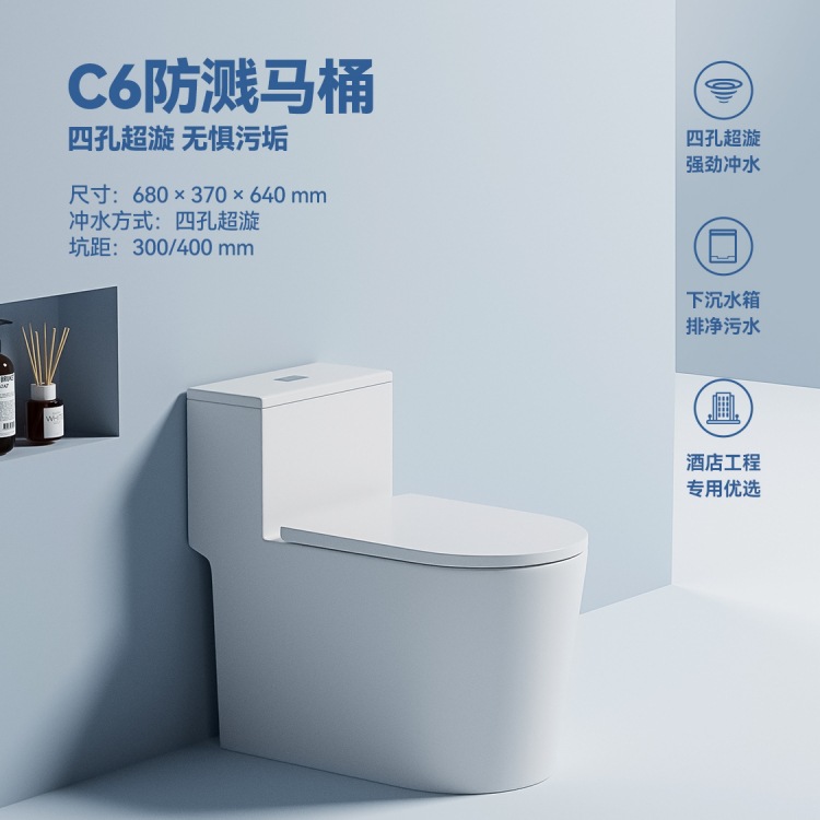 虹吸式马桶内壁无凹槽坐便器防堵防溅酒店公寓工程批发家用