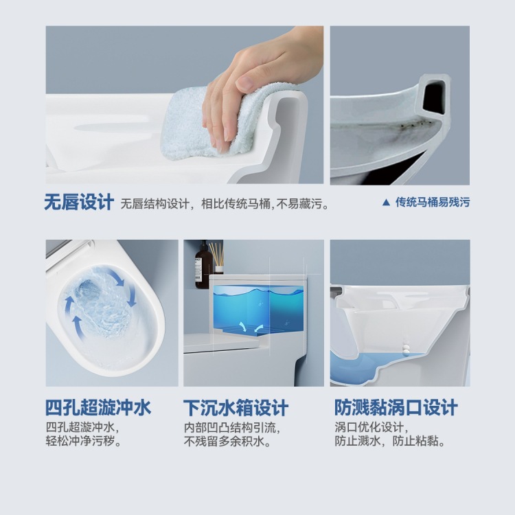 新型リップレス普通便器サイフォン式溝なし家庭用小戸型大口径防臭静音便器