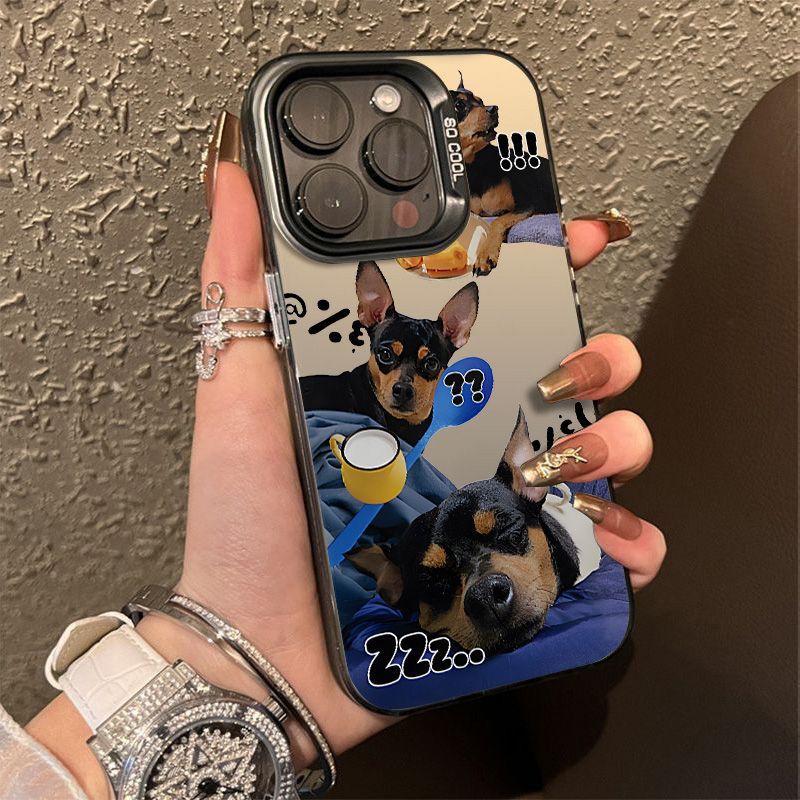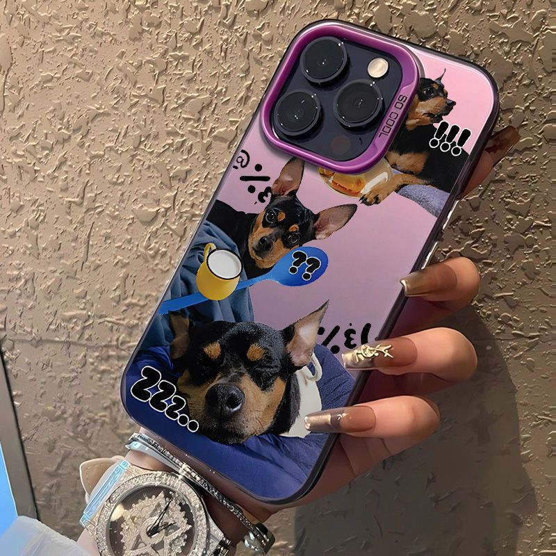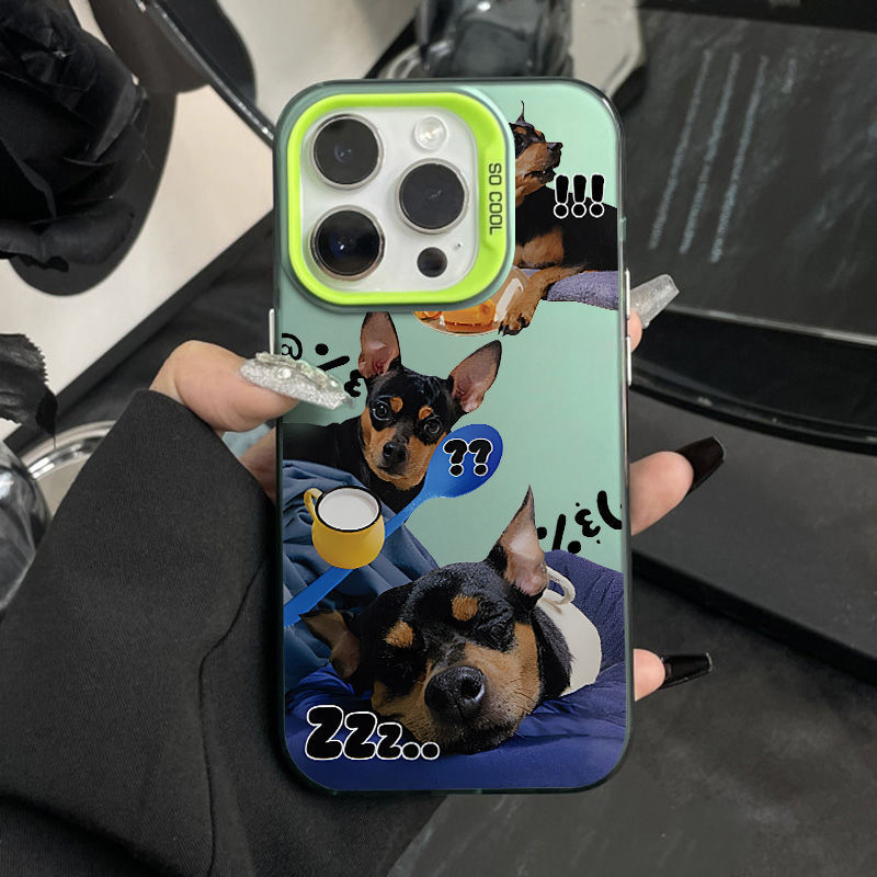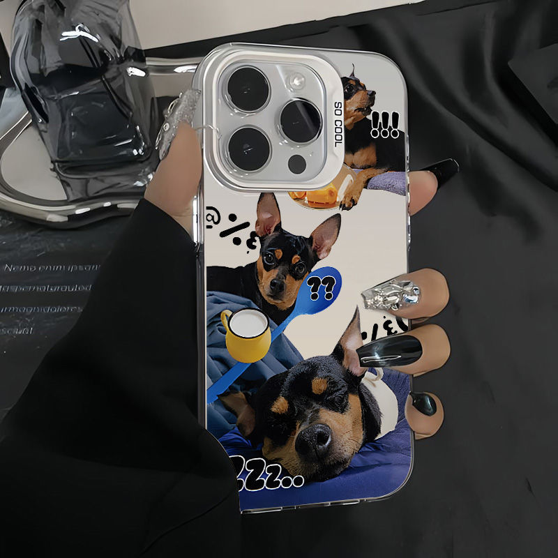かわいい犬はリンゴ16proフロストカラー銀ケース15/14クリエイティブ13/12かわいい11/xsmaxに適しています